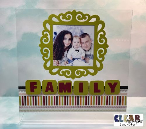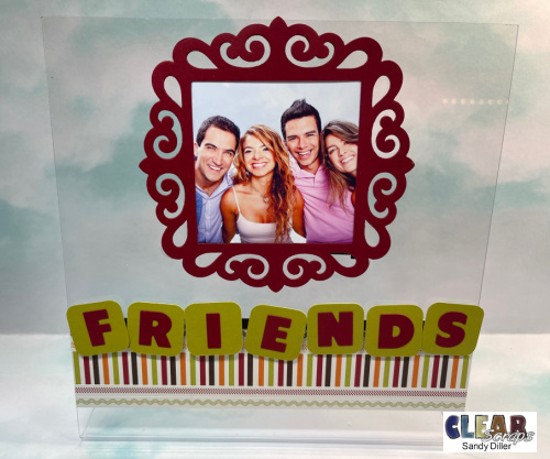 Hello crafty friends, it's Sandy Diller here today with a fun little project that will bring a smile to your face each time you look at it. I used the clear 8" X 8" Bookstand to create this flexible and changeable photo frame.