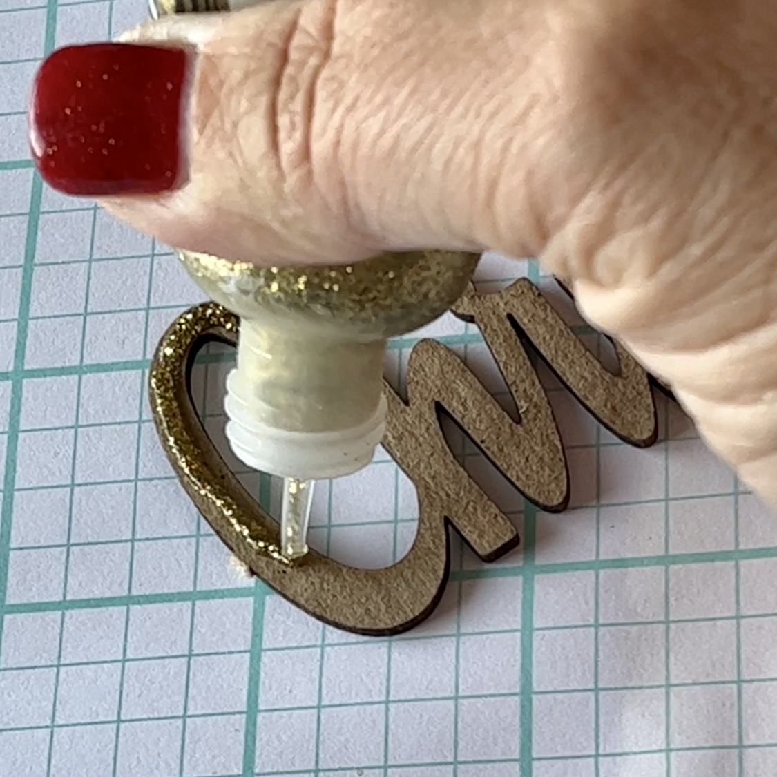 The Christmas Chipboard Word Title is a great addition to this card as well, but I needed some bling! So, I've chosen a gold glitter paint and squeezed it across the font of the title. Give this piece plenty of time to dry!