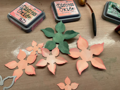 I created my own Poinsettias from a die using cardstock and ink but if this is not something you have, it can easily be made by using silk flowers.