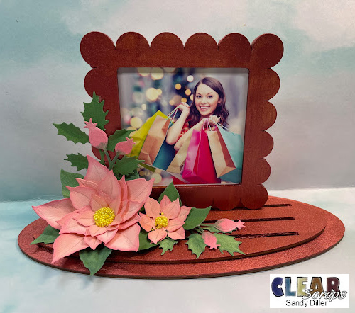 Howdy crafty friends, it's Sandy Diller here, if you are looking for a fast and easy way to save a favorite memory then this is for you. I began by painting the Base with Scallop Frame and then added some lovely poinsettia flowers.