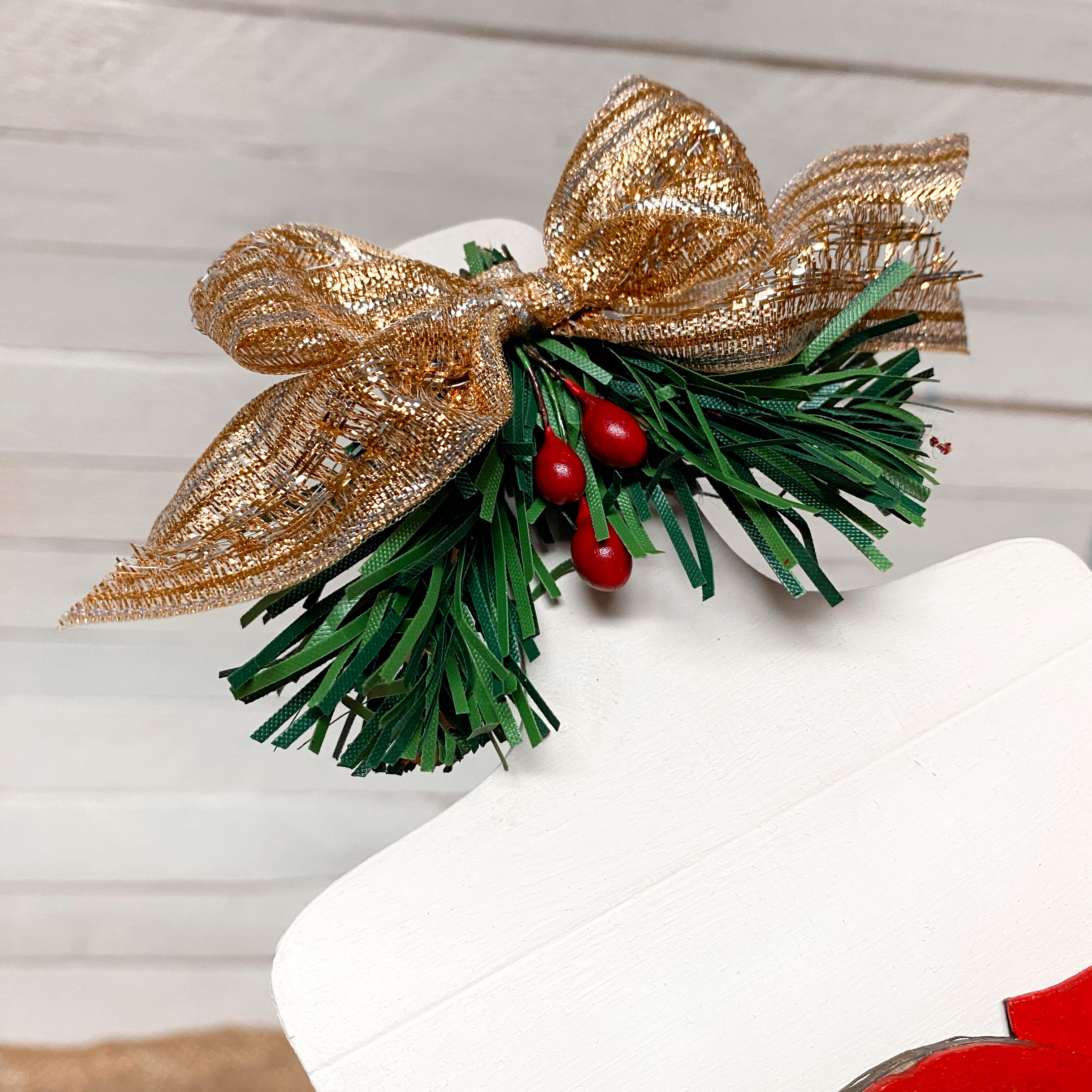 Then added some pine and berry trim and a gold bow to the handle and some gold trim below the shaker…