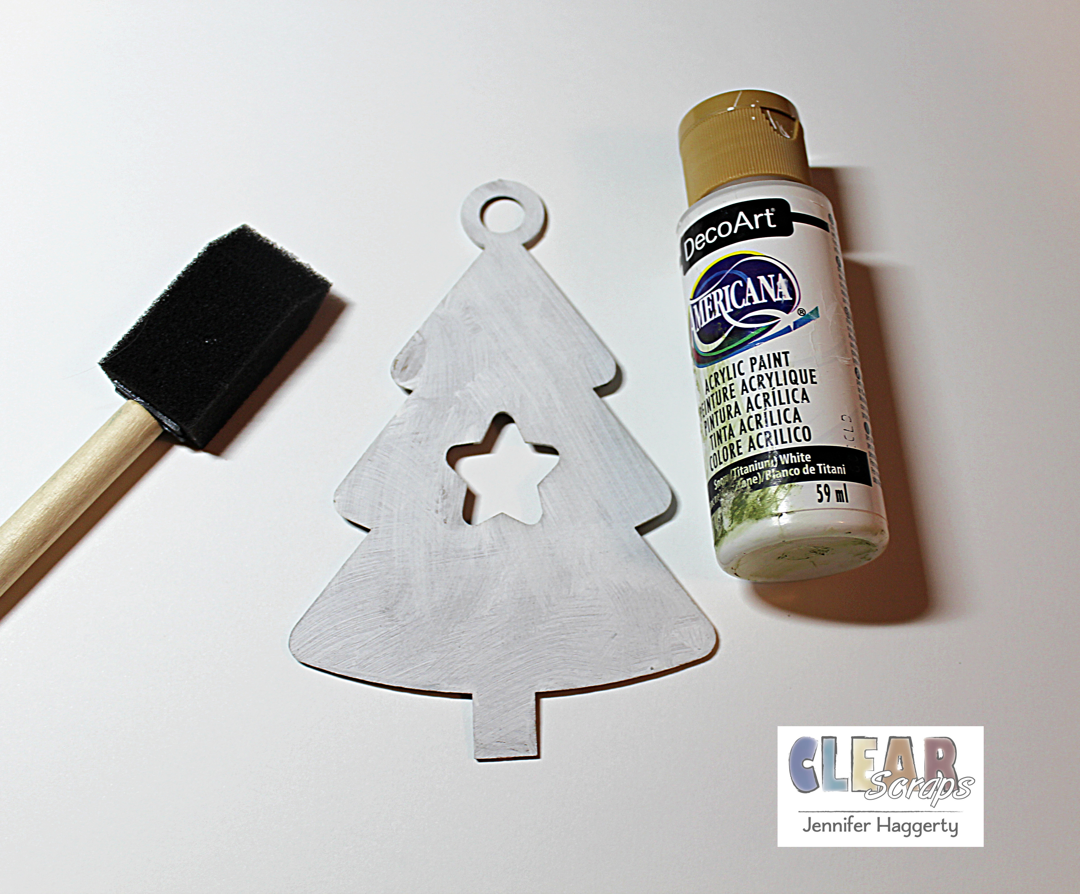 For my front cover, I used the new Star Tree Chipboard Embellishment Shape. I added a light coat of acrylic paint in white to the surface. I did not worry about whether I had full coverage because I knew I would be adding other mediums over the top.