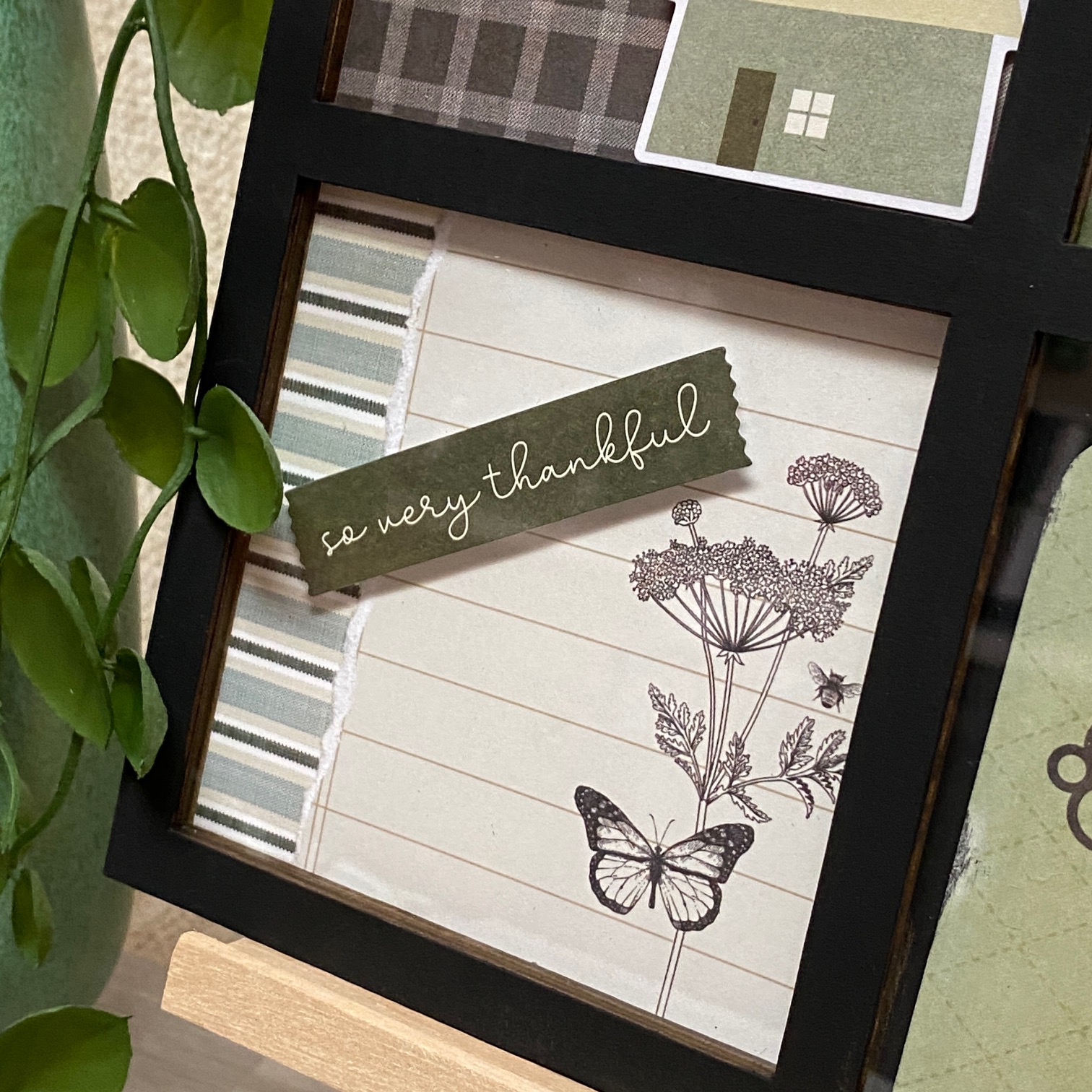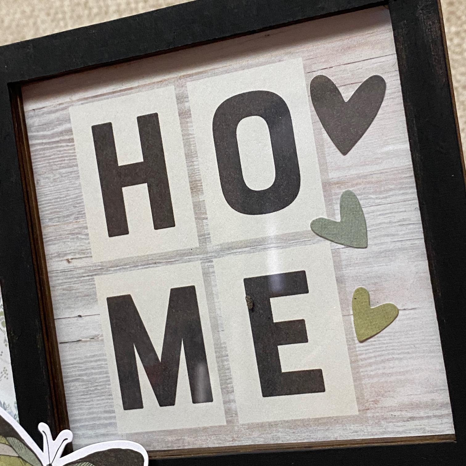 I wanted the butterfly to be between the spaces in the frame, but you can't do that unless you adhere the embellie to the OUTSIDE of the frame.