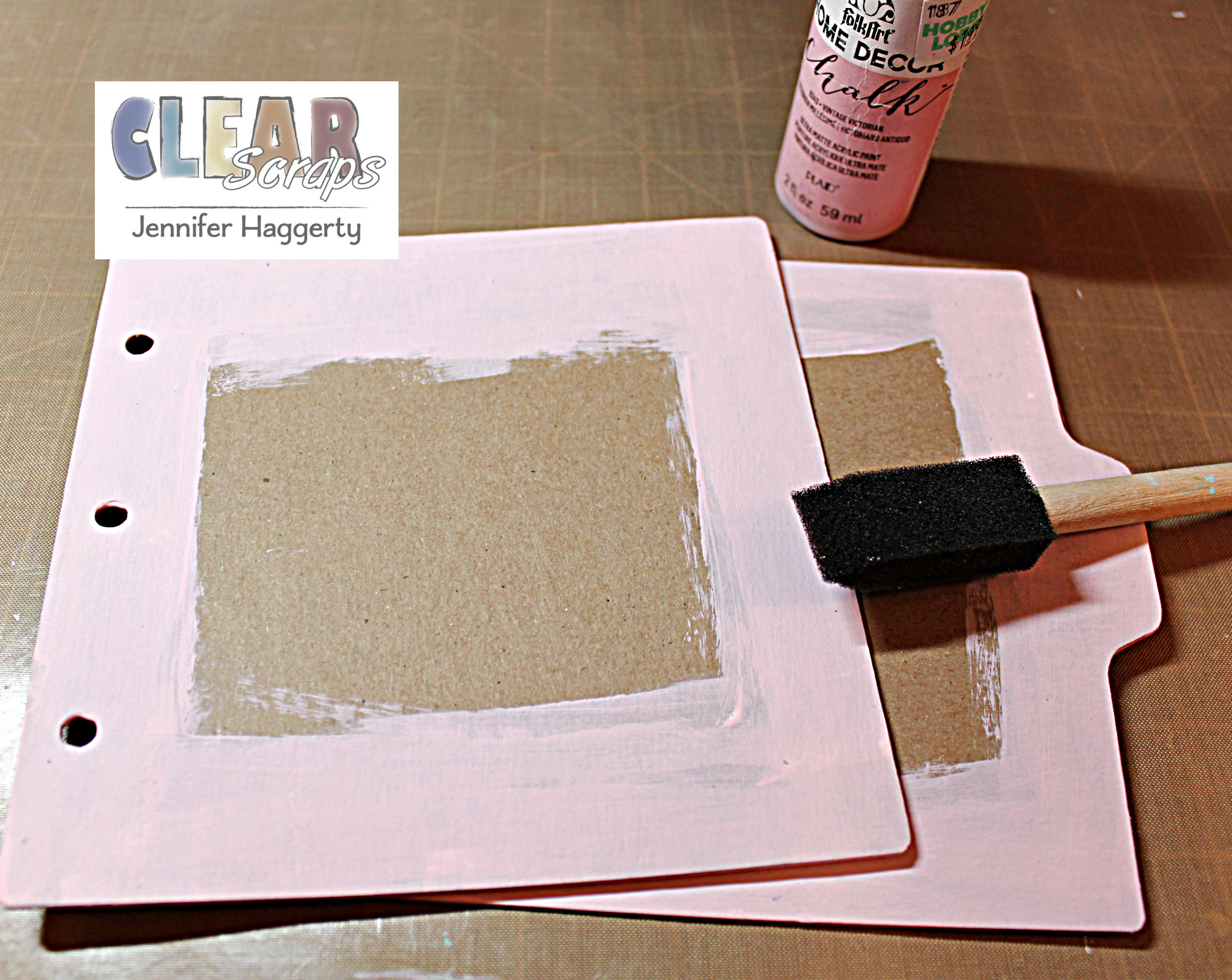Using chalk paint in light pink, I painted the outside edges of each of my chipboard pages (front and back!).