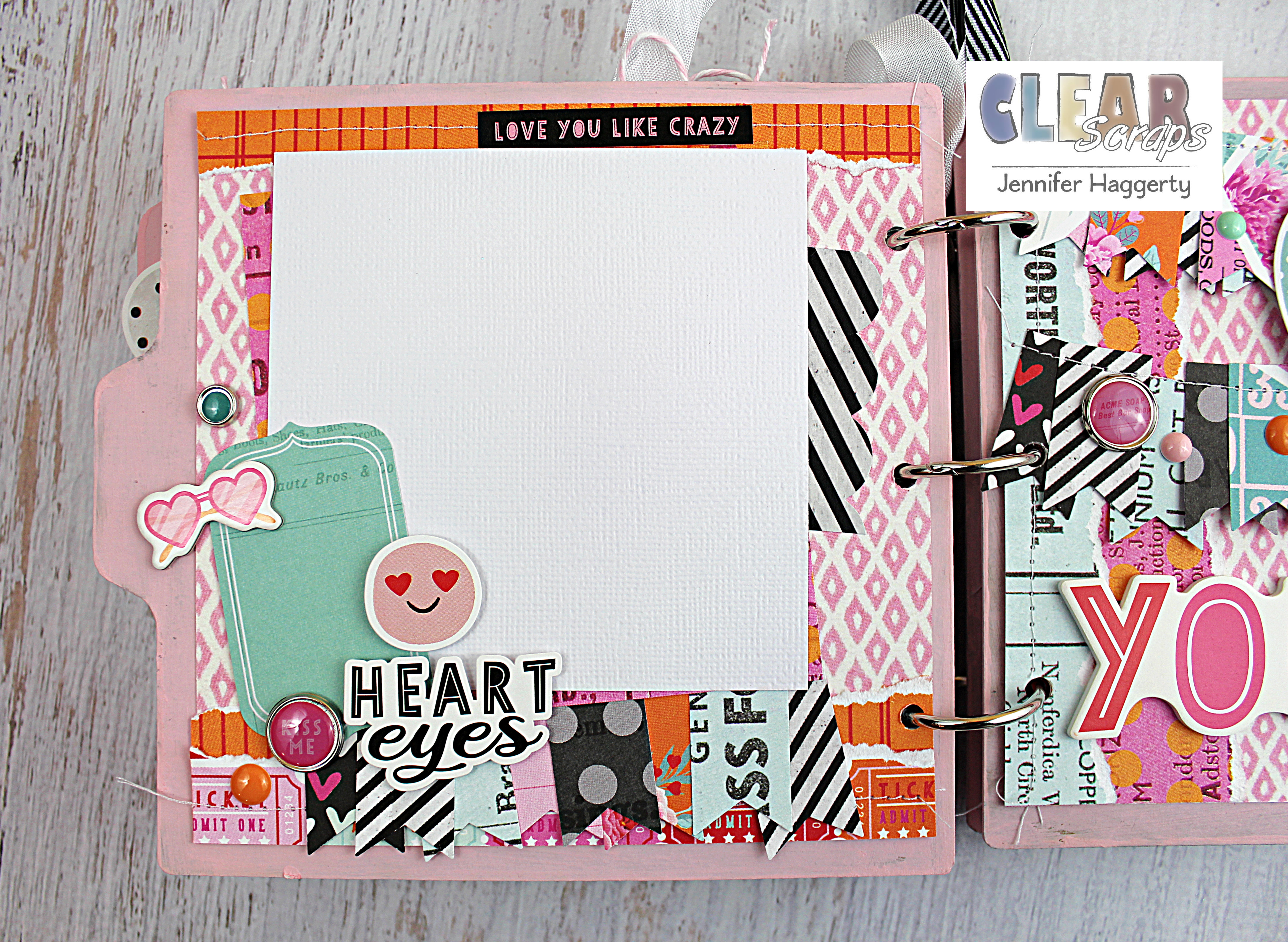 Hi friends! It's Jennifer here on the blog to share a mini album featuring one of the Mini Shaker Shapes with you today! Since Valentines Day is coming up I decided to create a fun book all about love! For my book, I used the 6×6 Chipboard 3 Tabbed Album.
