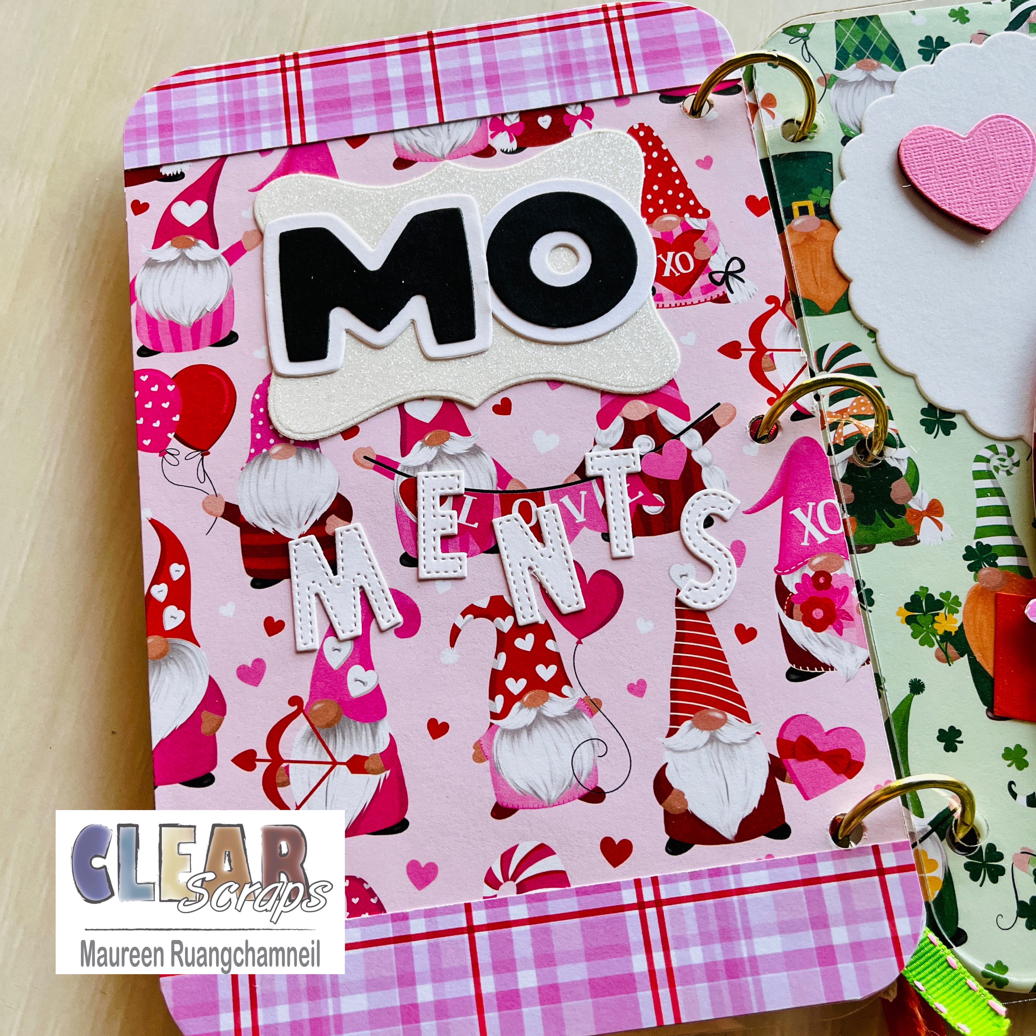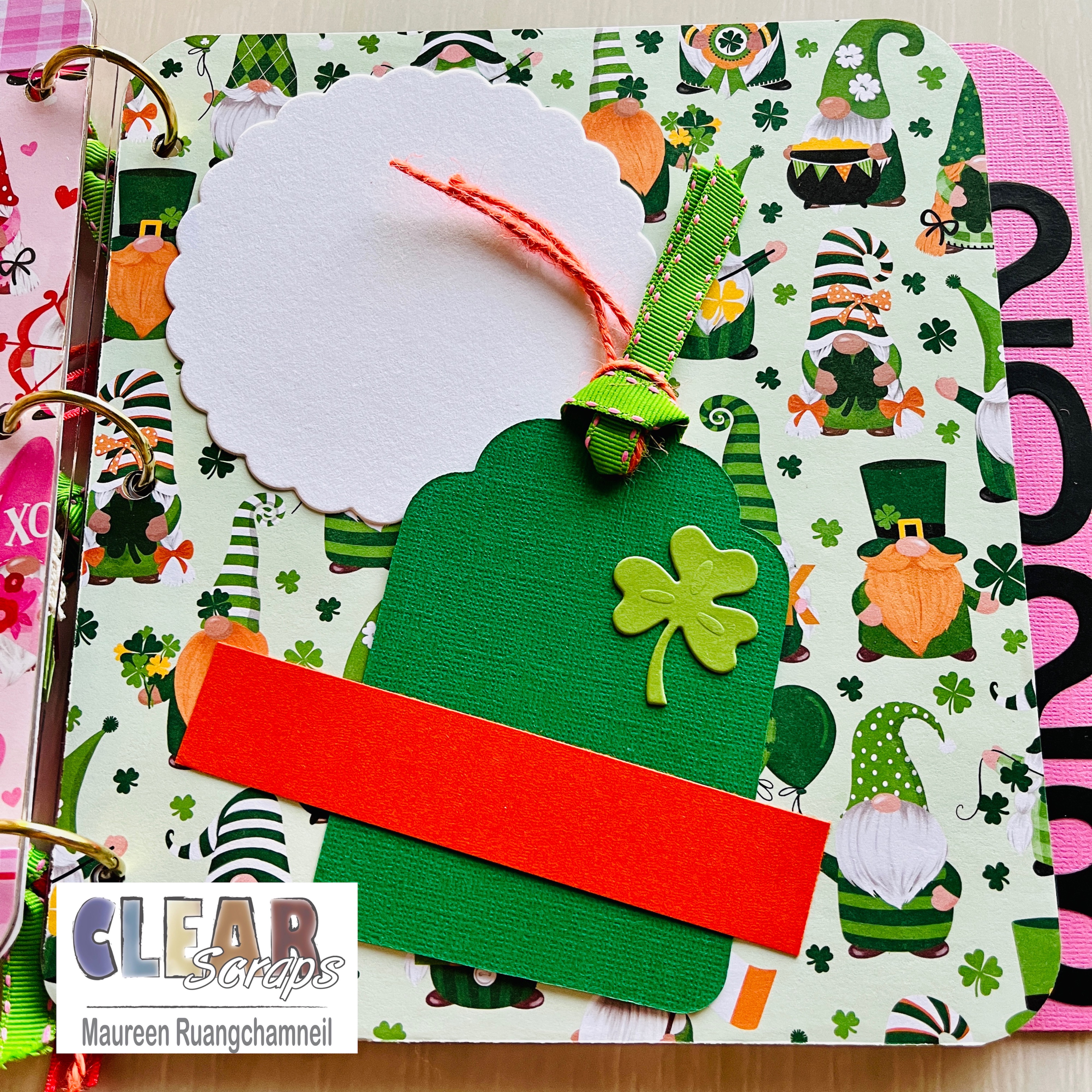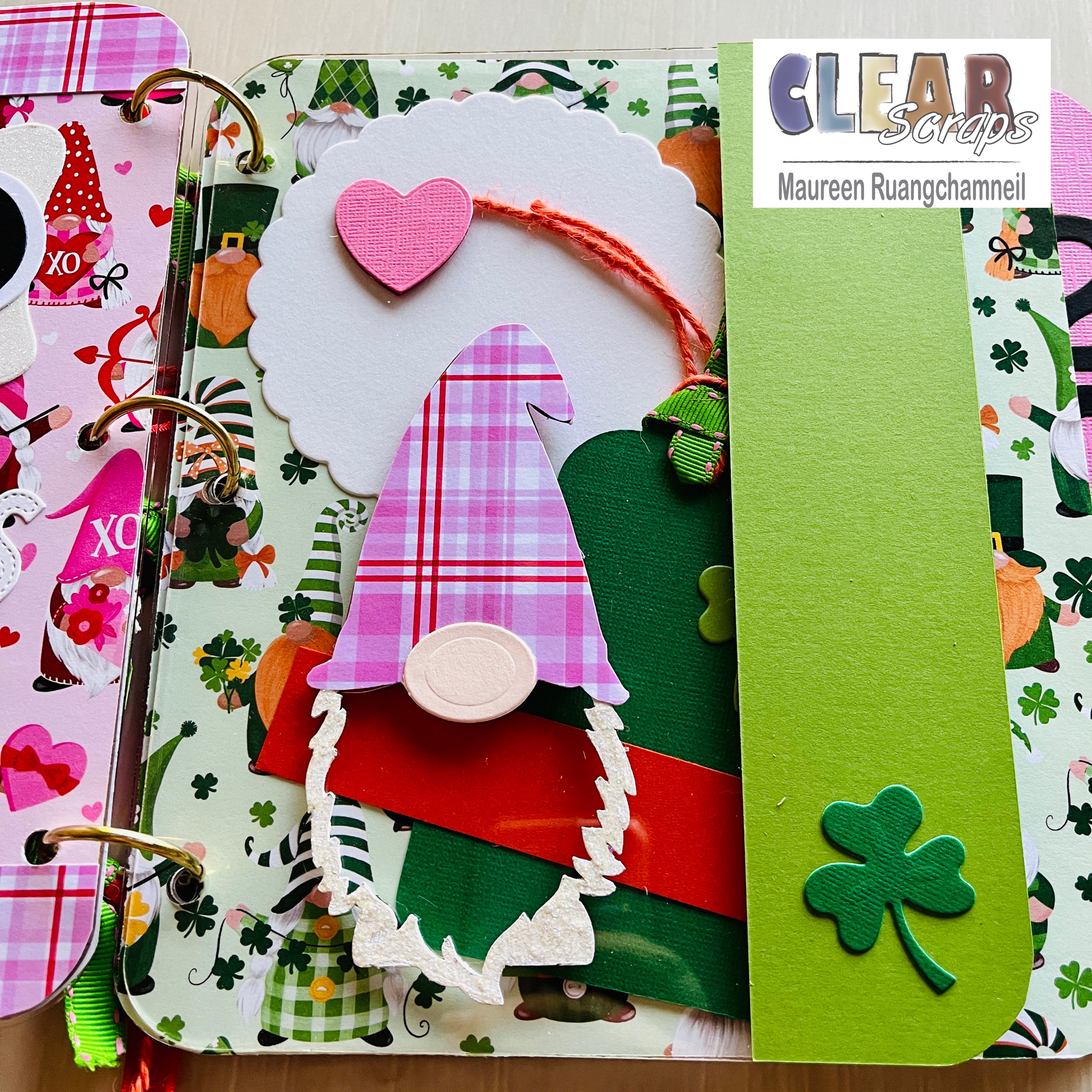 I decided to give it a try as part of my New Year goals I set for myself. I found this adorable set of gnome paper to use for this project – it's themed by Spring holidays in the year and thought it would be a great match to go with this Mixable Cassy 8×8 Album from Clear Scraps.