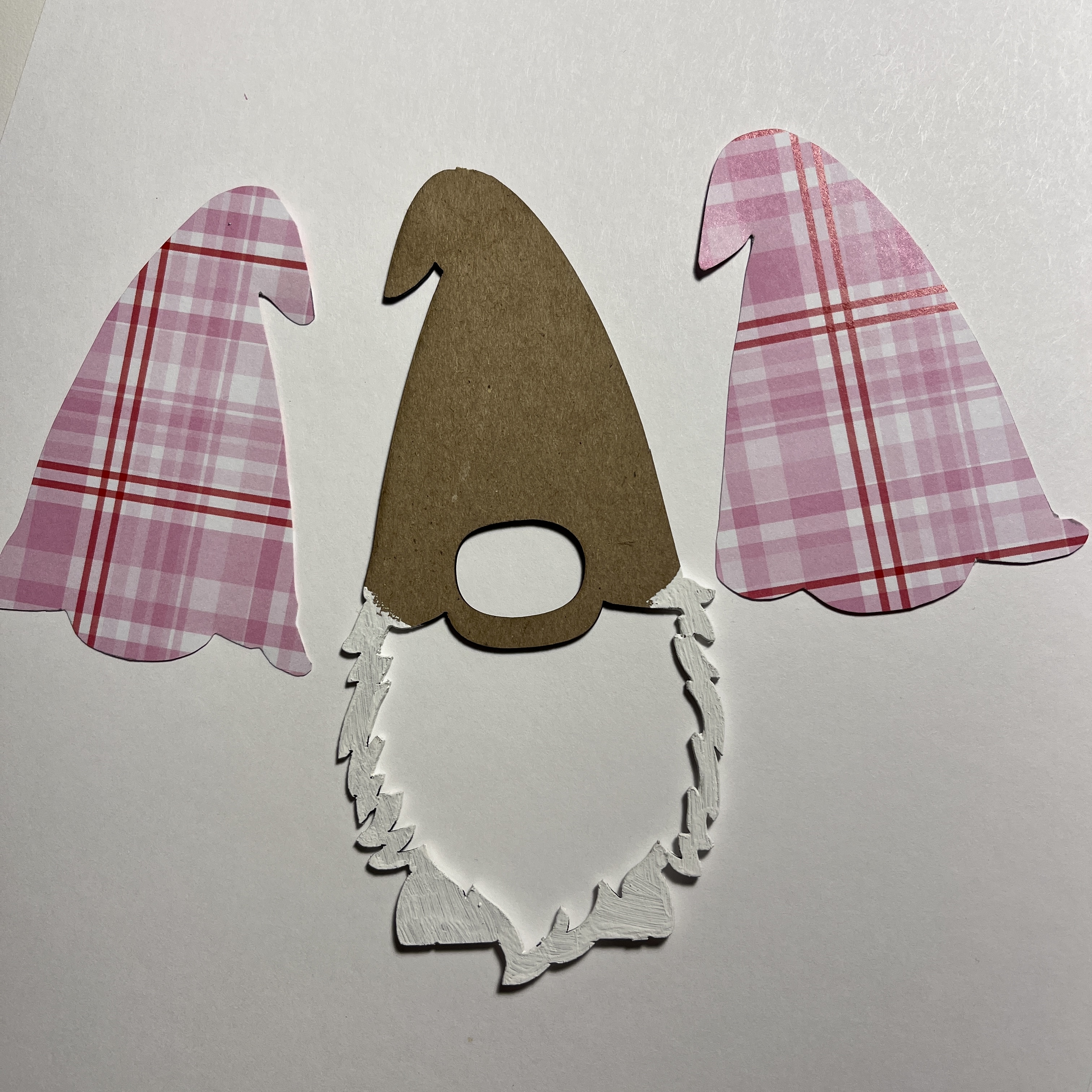 Additional supplies: gnome paper (Hobby Lobby), assorted card stock colors, vinyl (using Cricut Joy machine), floral embellishments, pop dot foam pieces