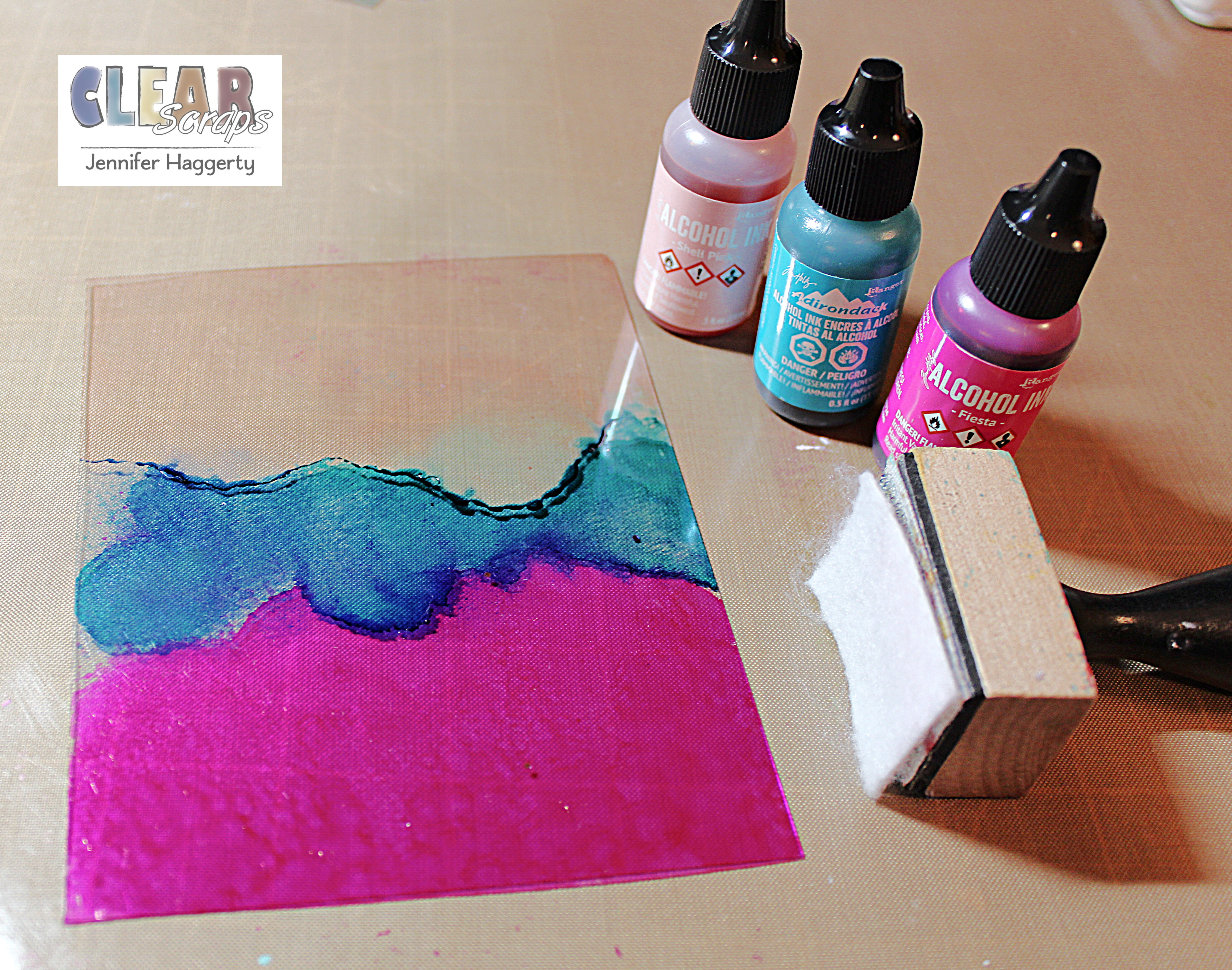 For my acrylic background I used three different bright colors of alcohol ink and blended them together.