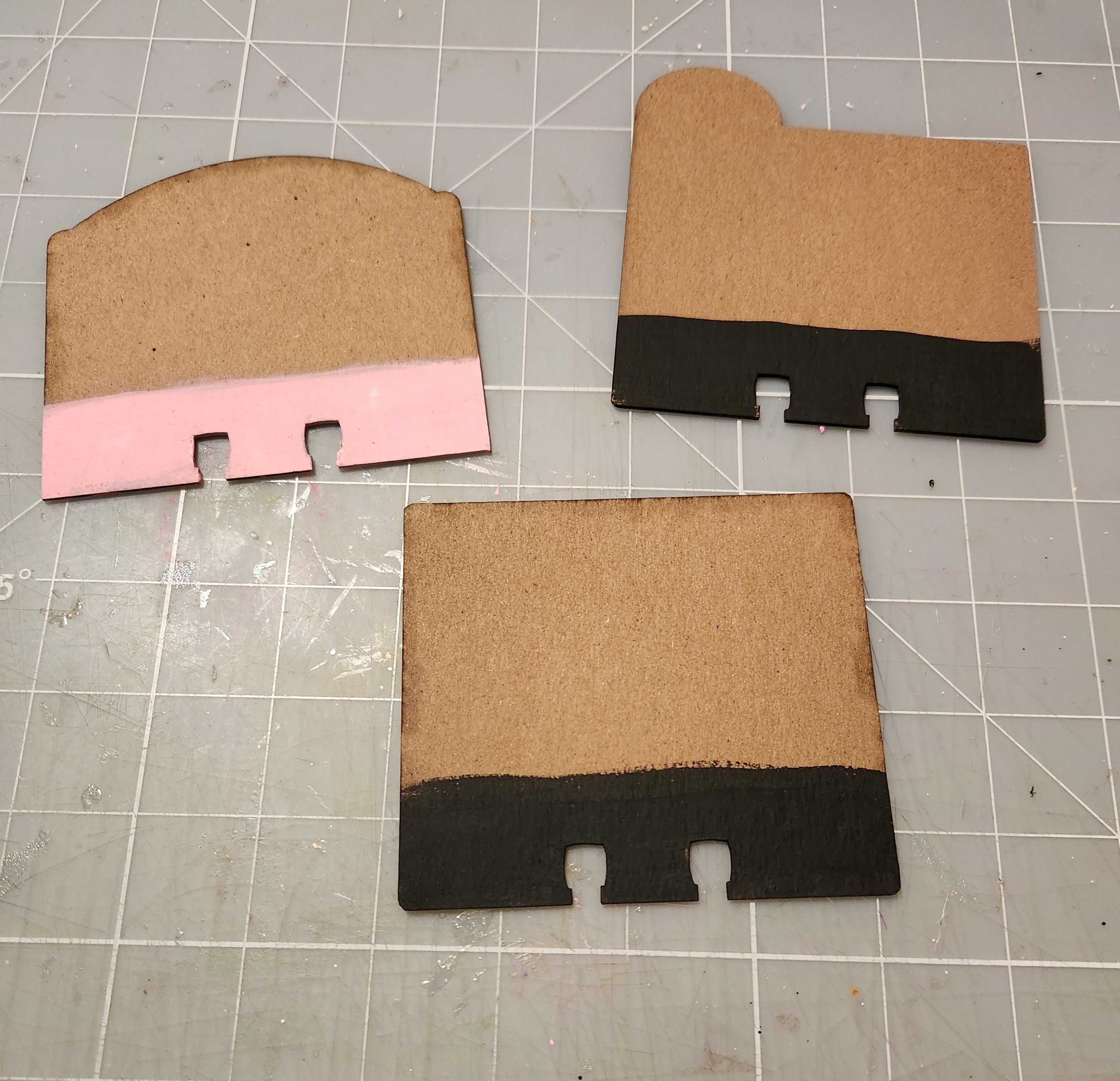 Chipboard Memory-Dex cards: I painted the bottom edges using acrylic paint Black (2 total) and one using pink acrylic paint. Let dry.