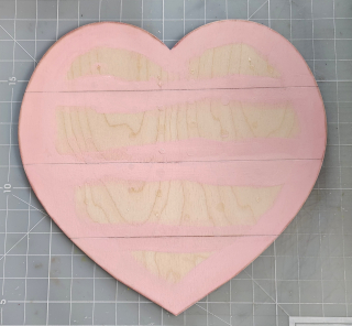 To begin I took some Folkart Conch Shell acrylic paint and applied around the outside edges of my heart shape, including between the wood sections Let dry before preceding to the next step.