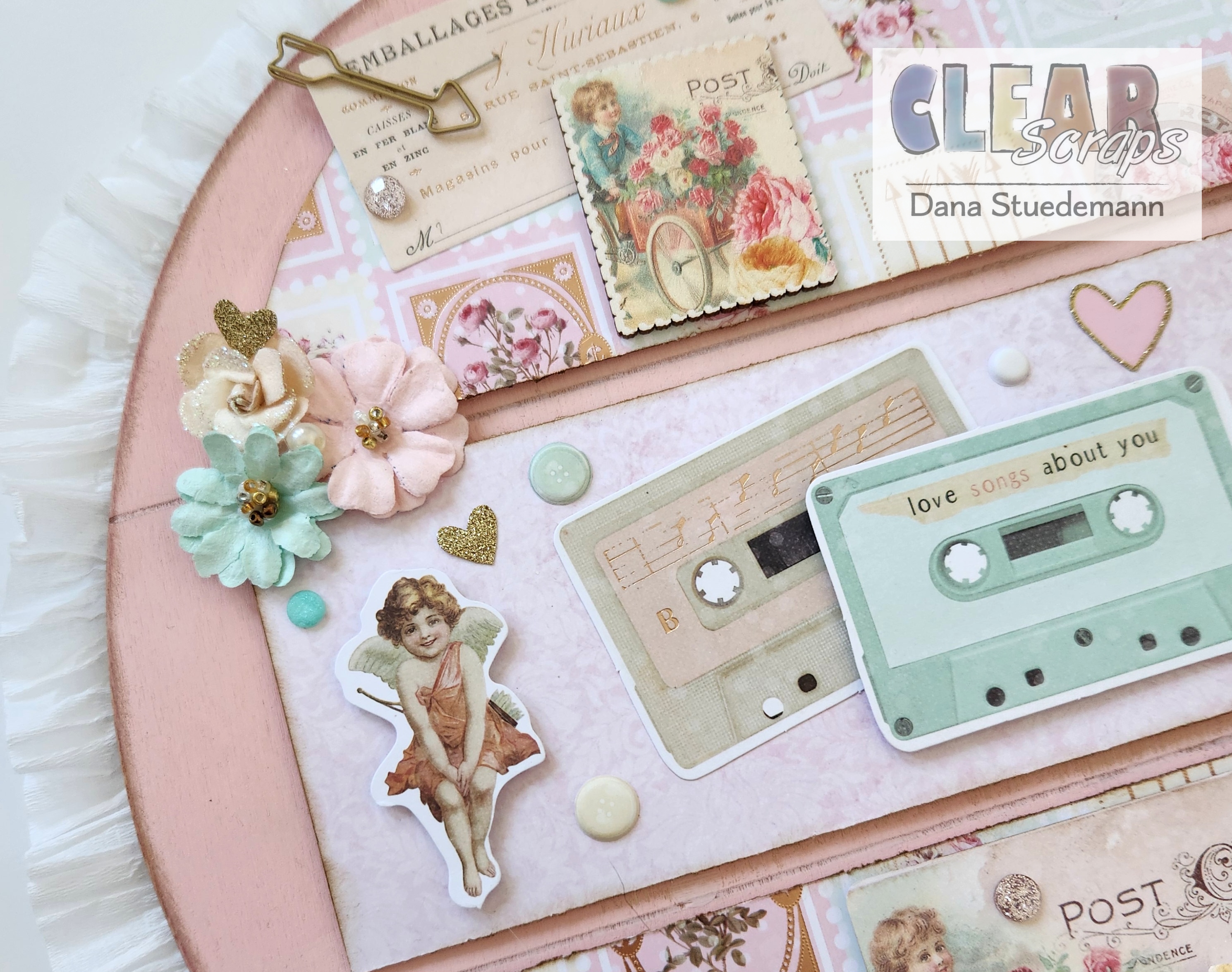 The papers, flowers, ephemera I'll be using to decorate my Shiplap Heart, are from Frank Garcia's Magic Love collection. I adore the vintage look. But you could use any paper style you prefer to decorate your wood heart base.