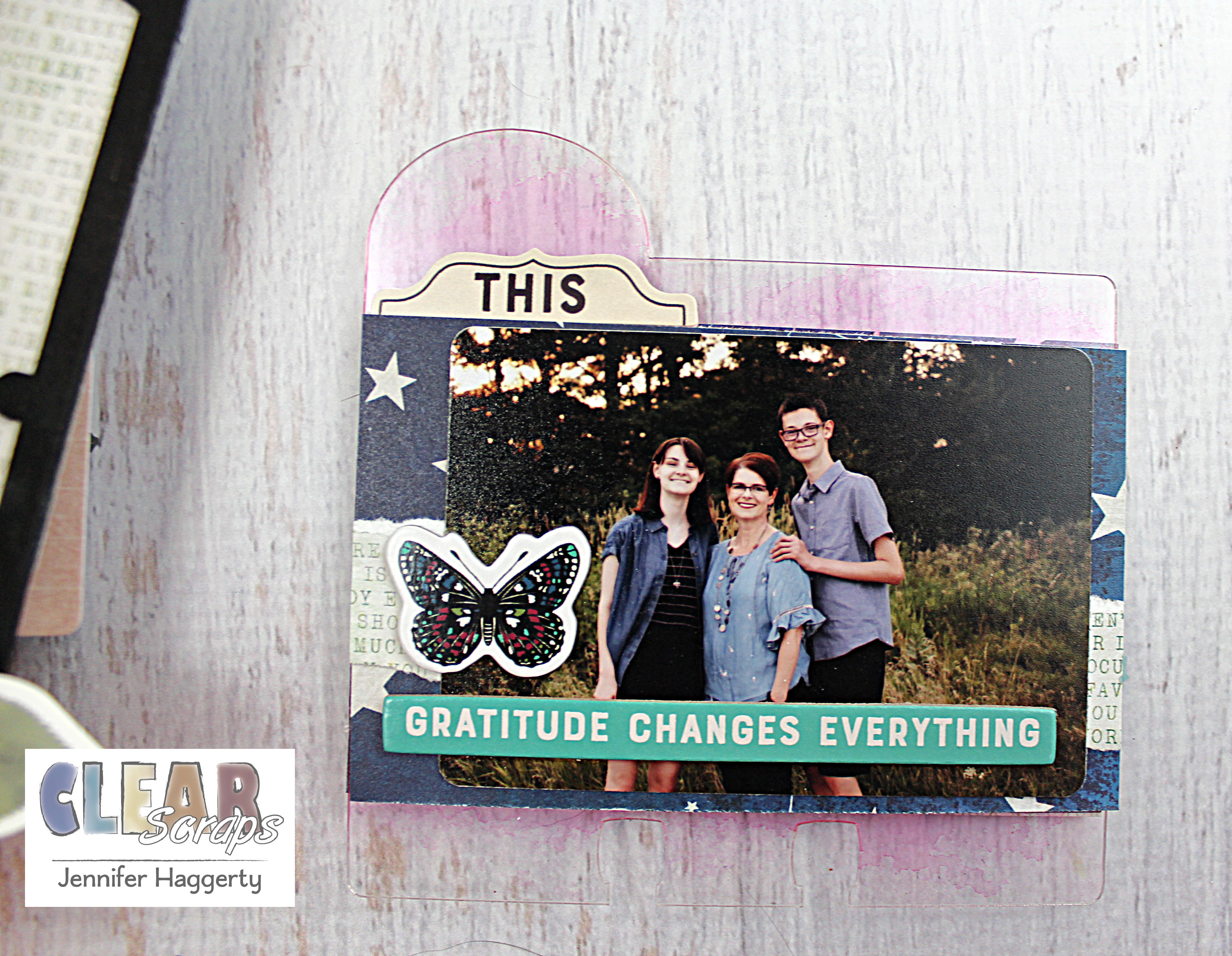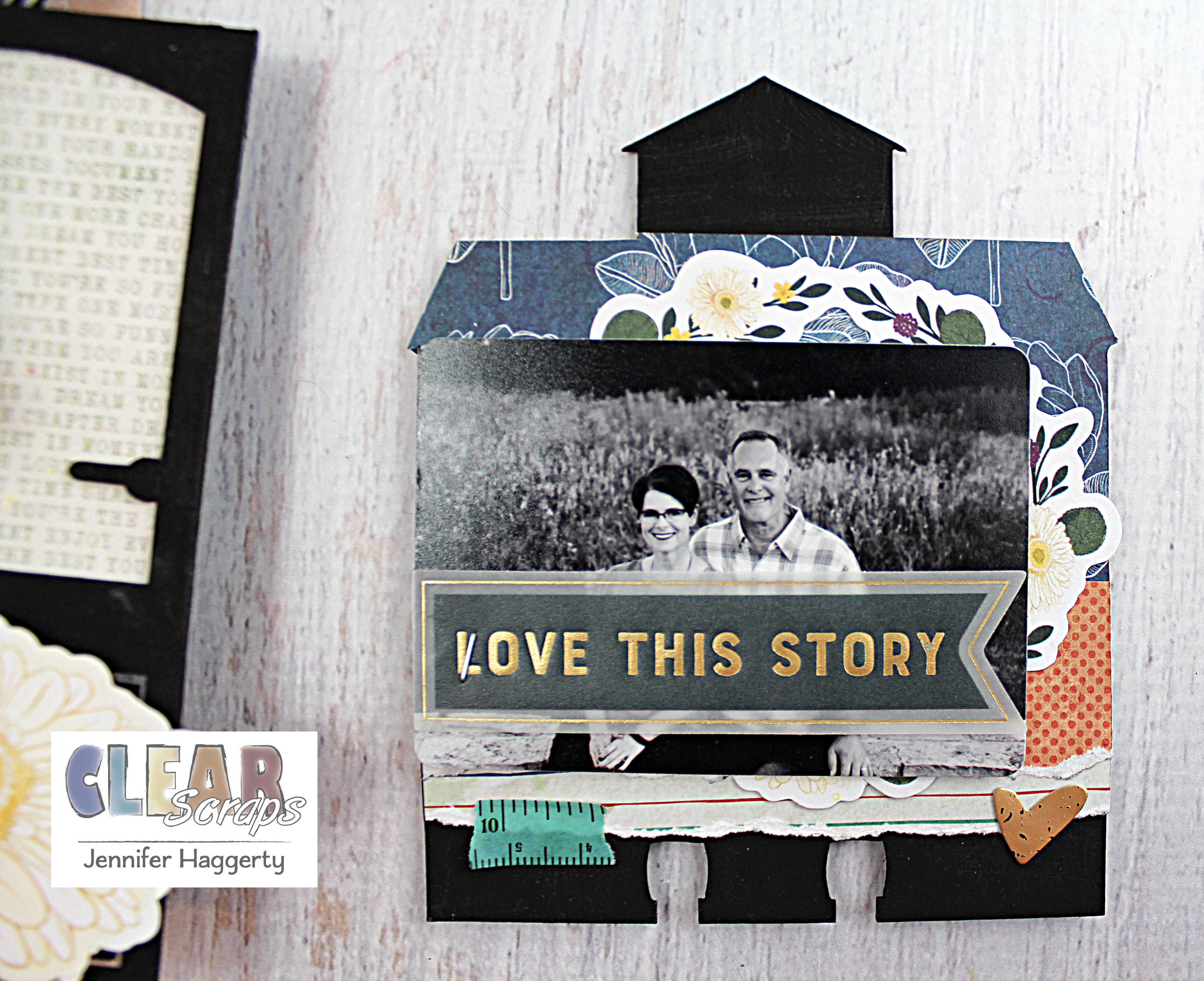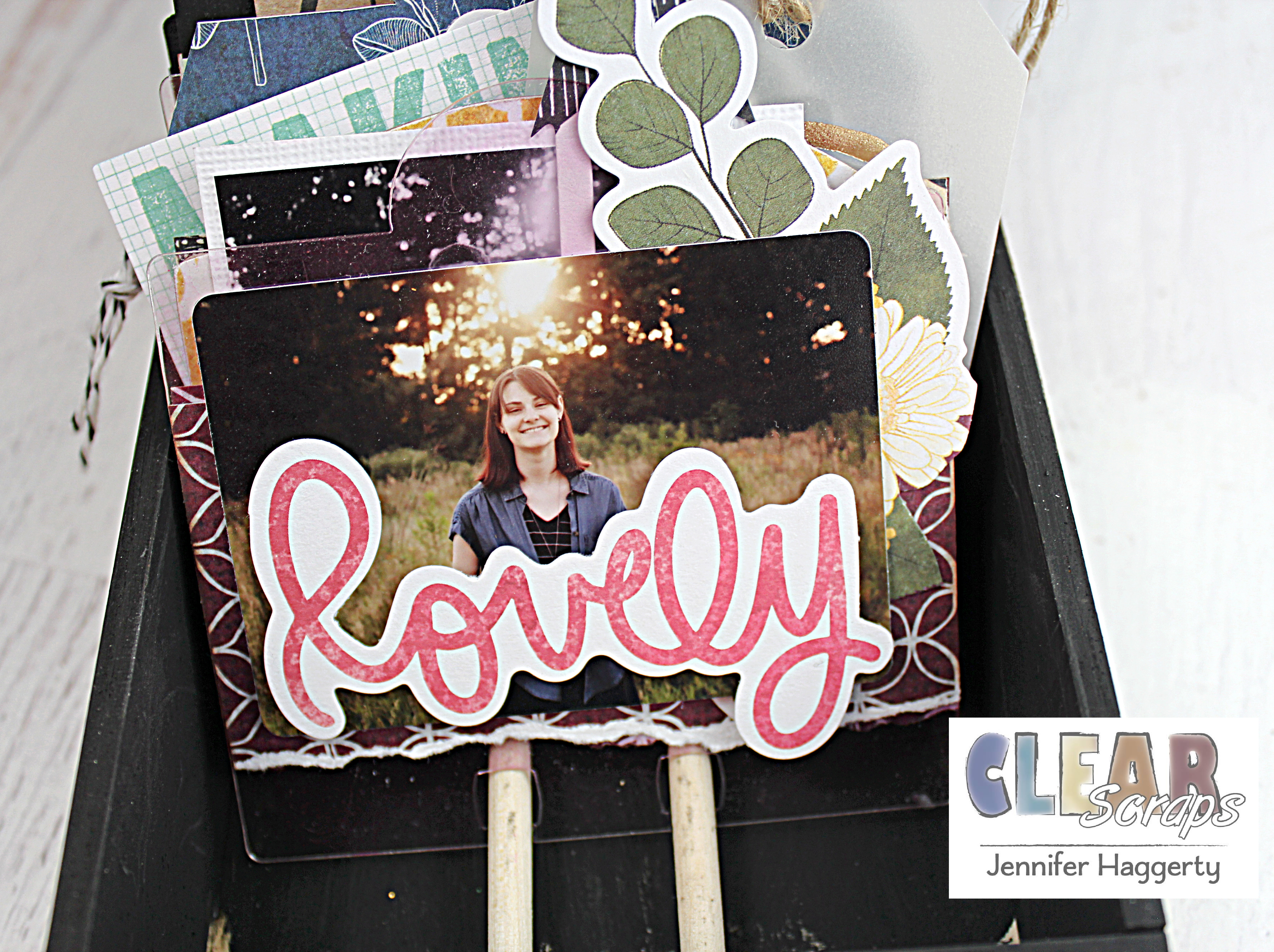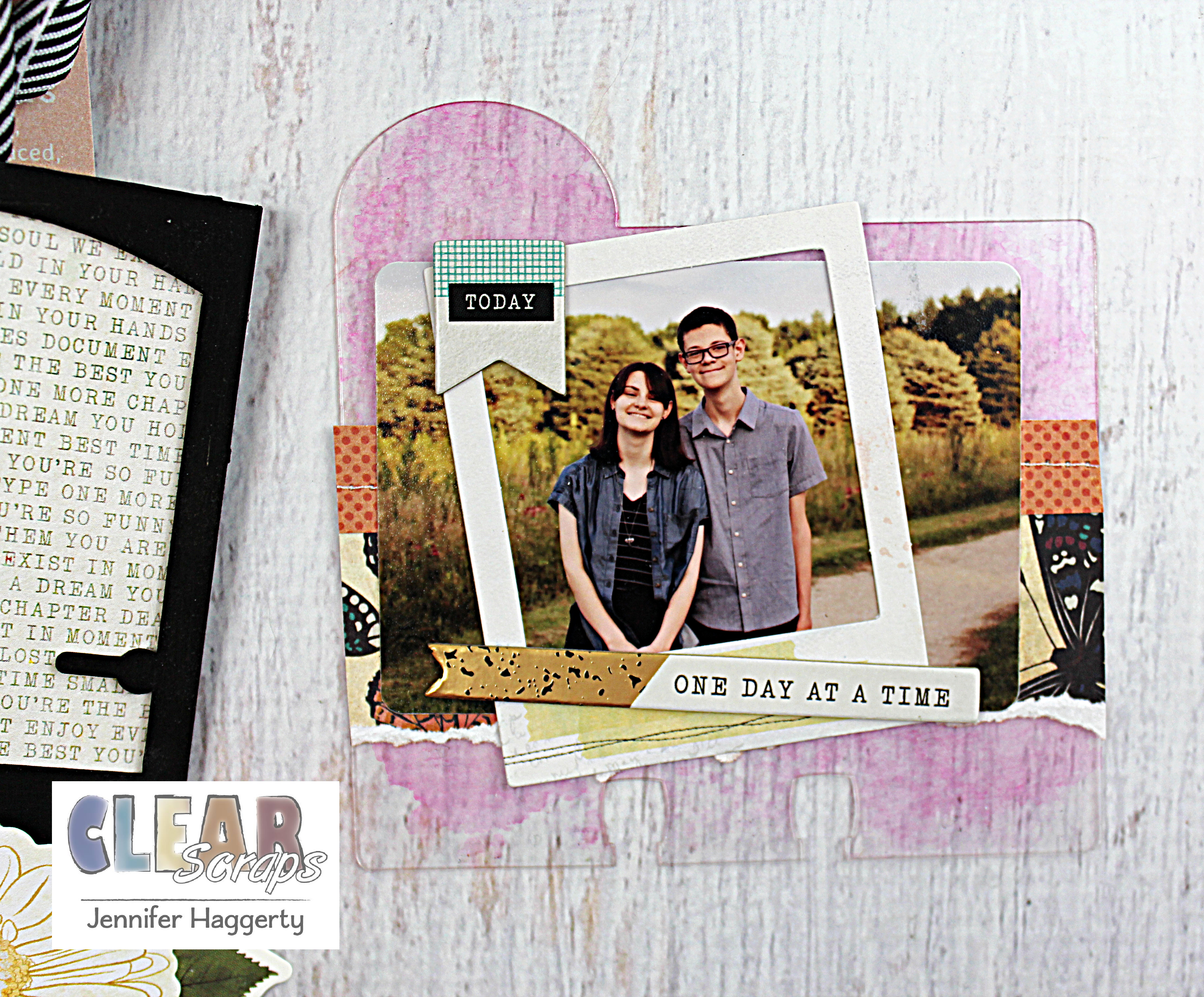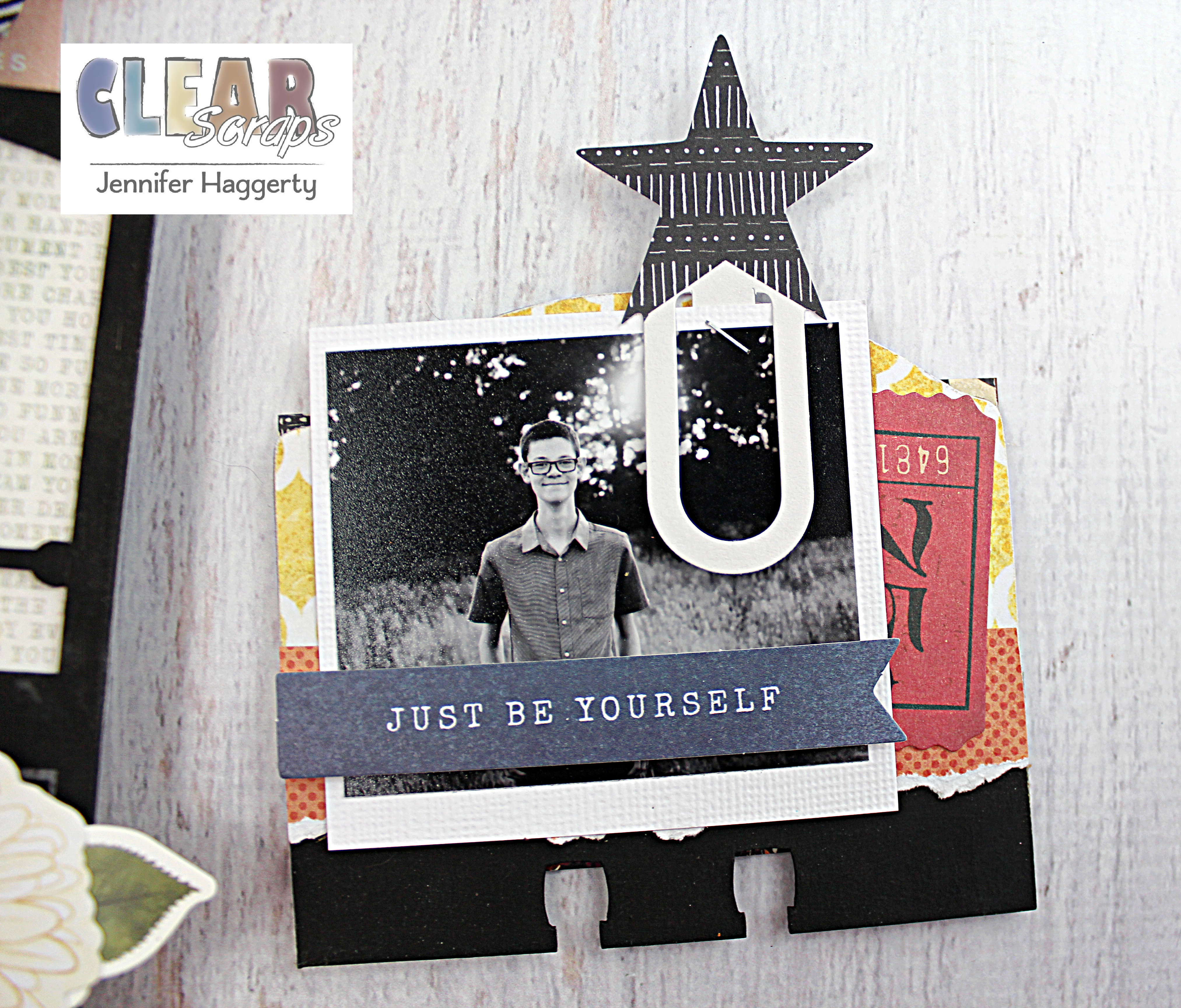 Here it is on the Rounded Chipboard Divider Card which I covered in patterned paper and small embellishments. I love the way the black stands out against the paper!