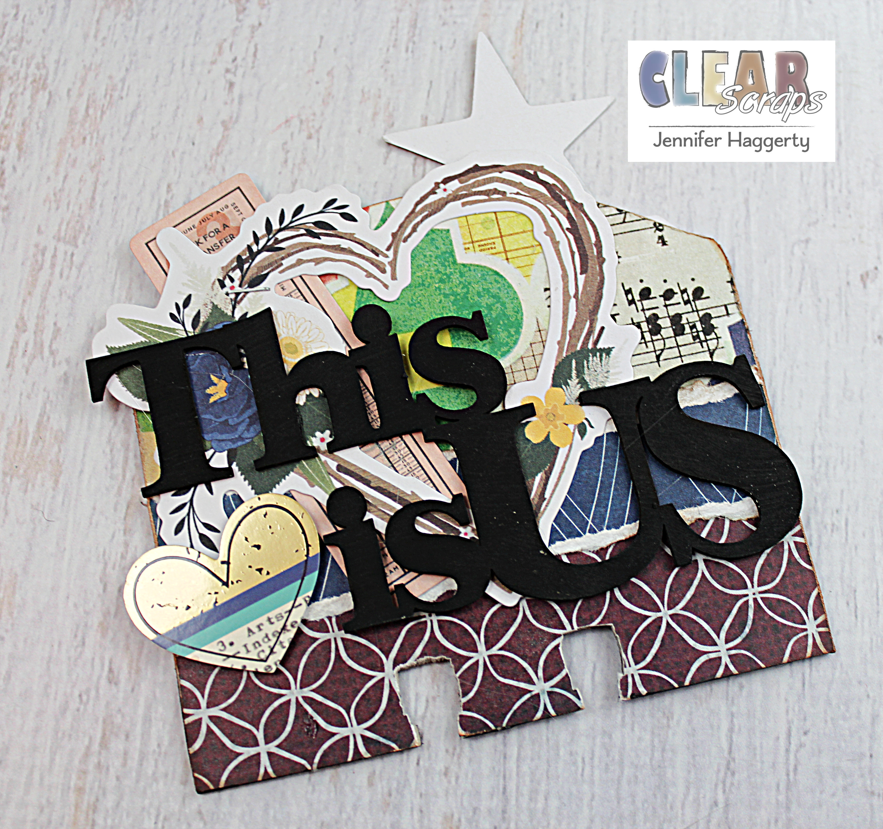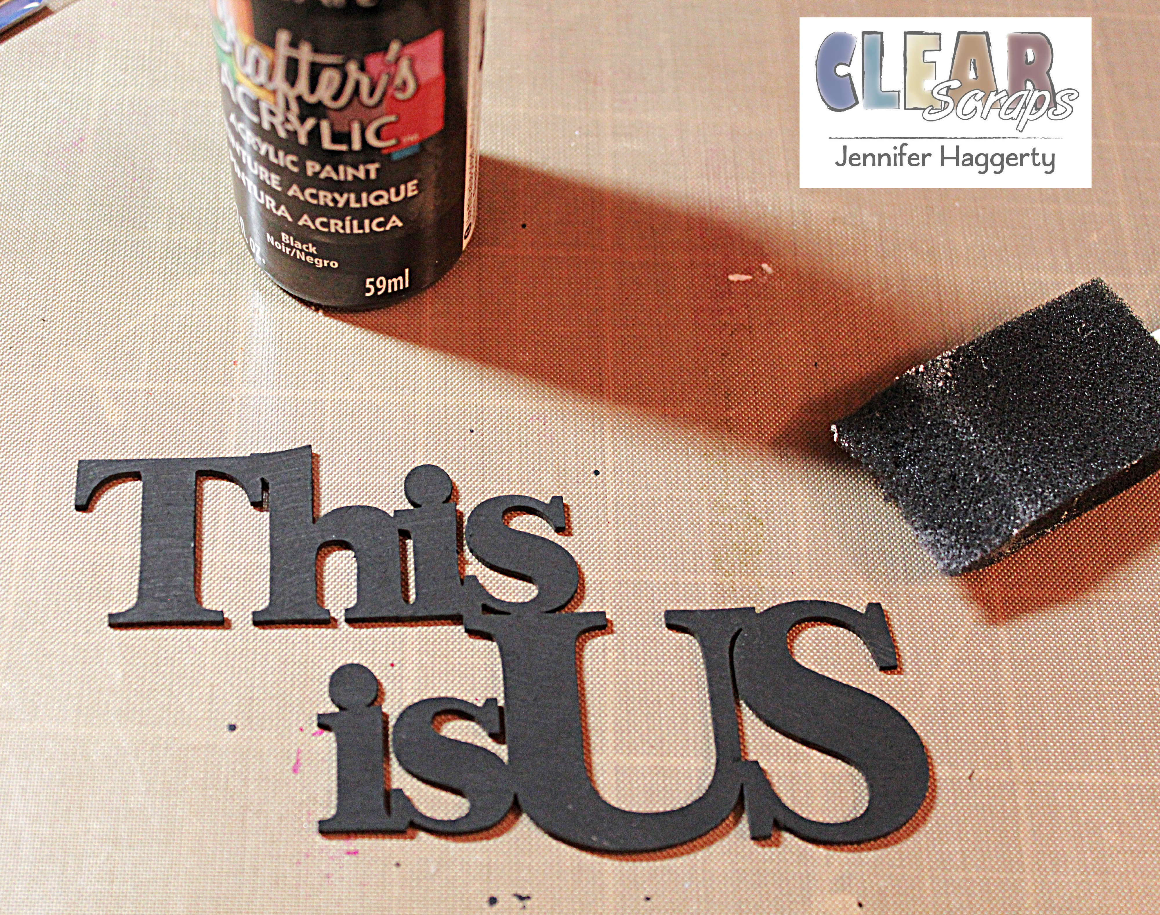 While I had my black acrylic paint out, I painted the This is Us Chipboard Word Script Title that I used on my front Divider Card.