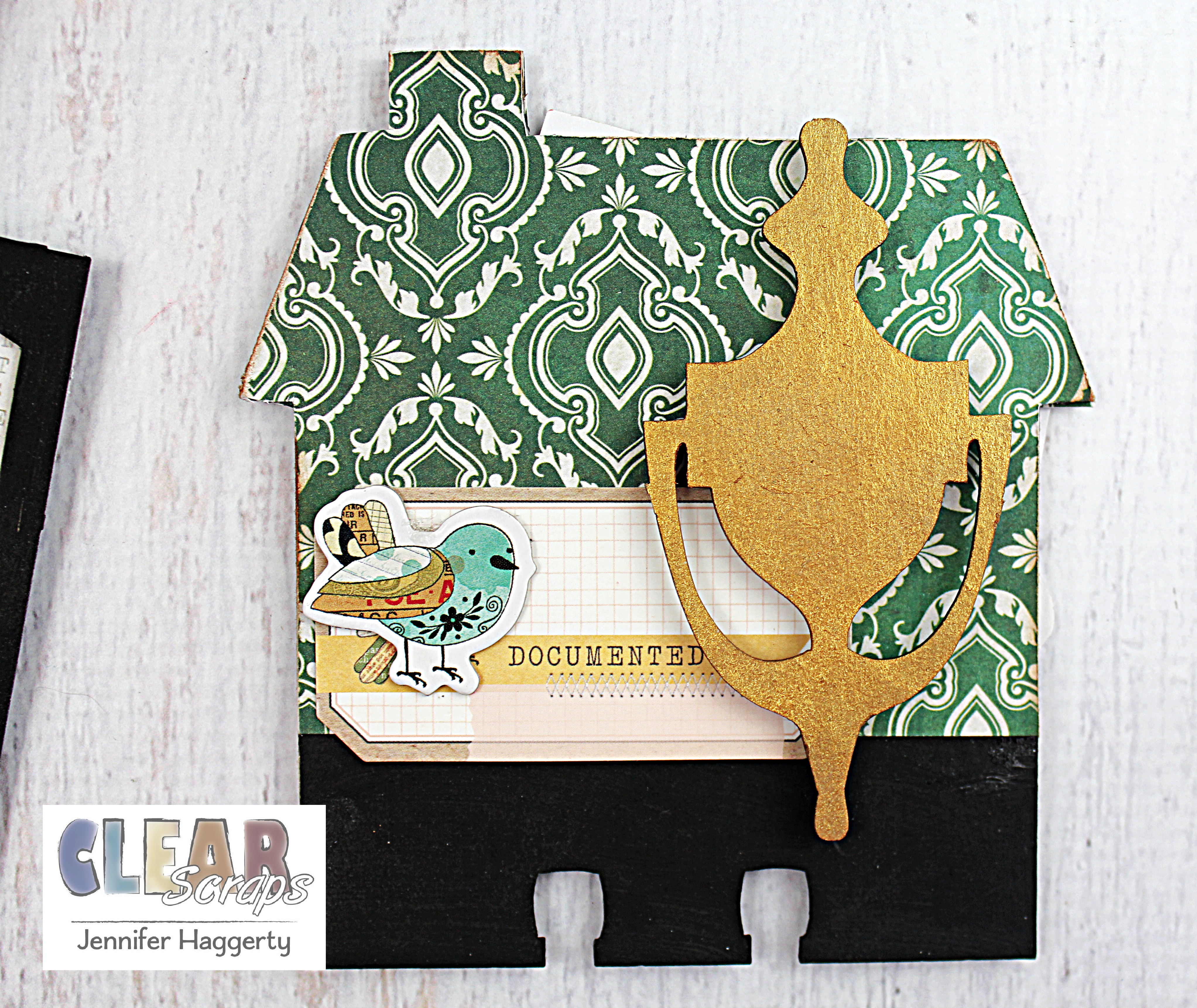 Here is a close up of one of the House Chipboard Divider Cards with a Door Knocker Chipboard Embellishment Shape.