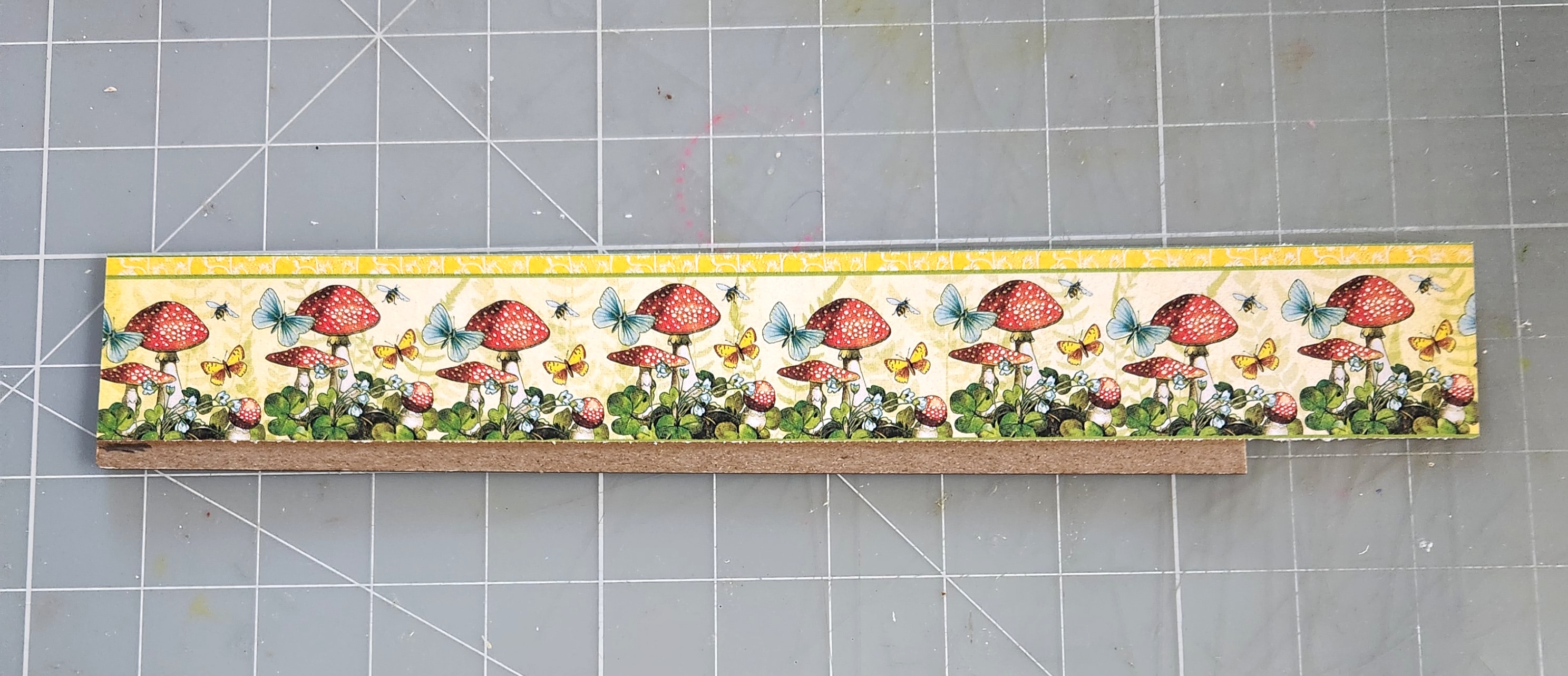 Then glue your chipboard border piece at the top of your wood base. Set aside for now.