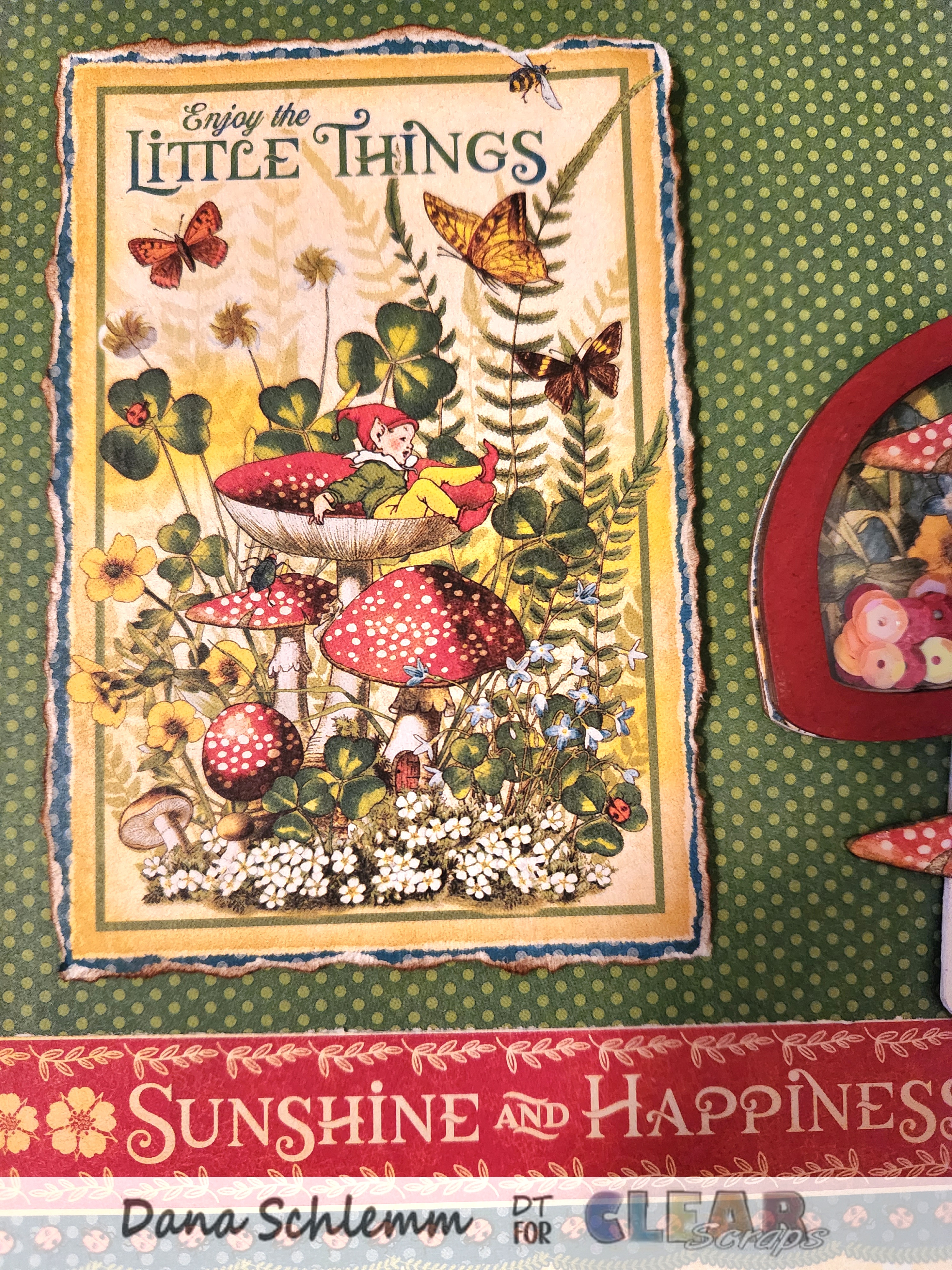 The paper collection I chose to use is from Graphic45 "Little Things " (the gnomes and garden fairies are too cute) I will be inking all my papers using Tim Holtz Distress Ink Gathered Twigs.