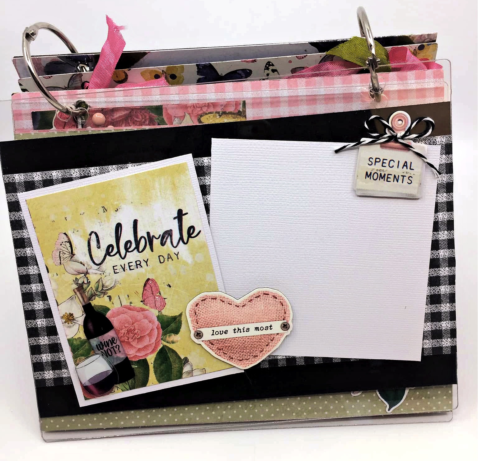 The base album is the Clear Scraps Mixed Envelope Album which includes both chipboard and acrylic pages. Don't be afraid of the acrylic! It's super easy to work with and adds a fun touch to your album! It also blends well with the shakers! The Mini Shaker Wine Glass is perfect for this album, of course, but you can find a shaker to match almost any occasion in the Clear Scraps store! You can check out all the different options HERE. They are a great touch to personalize any project!