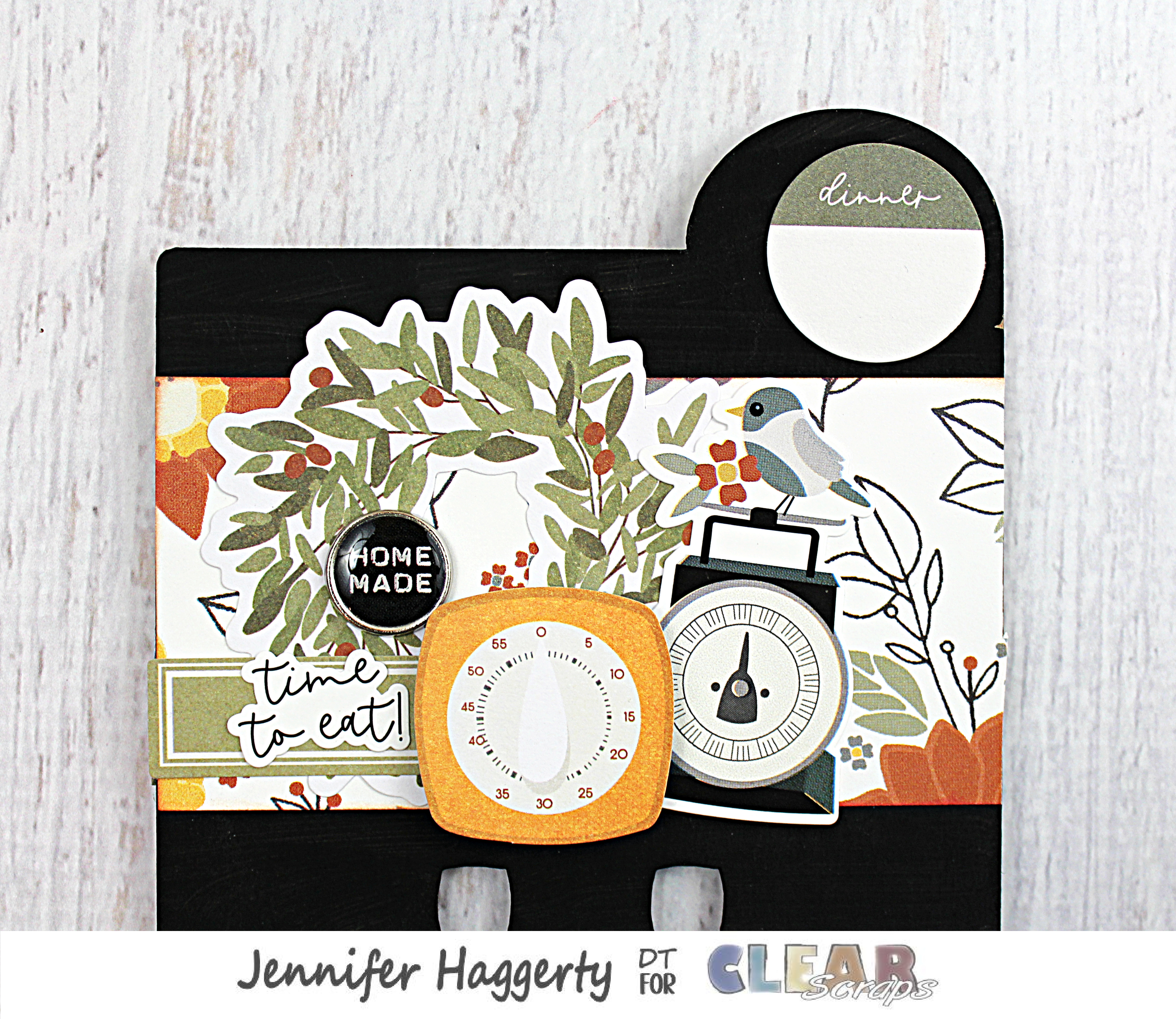 For breakfast, I created a pocket for my tags using the Regular Tab Chipboard Divider.