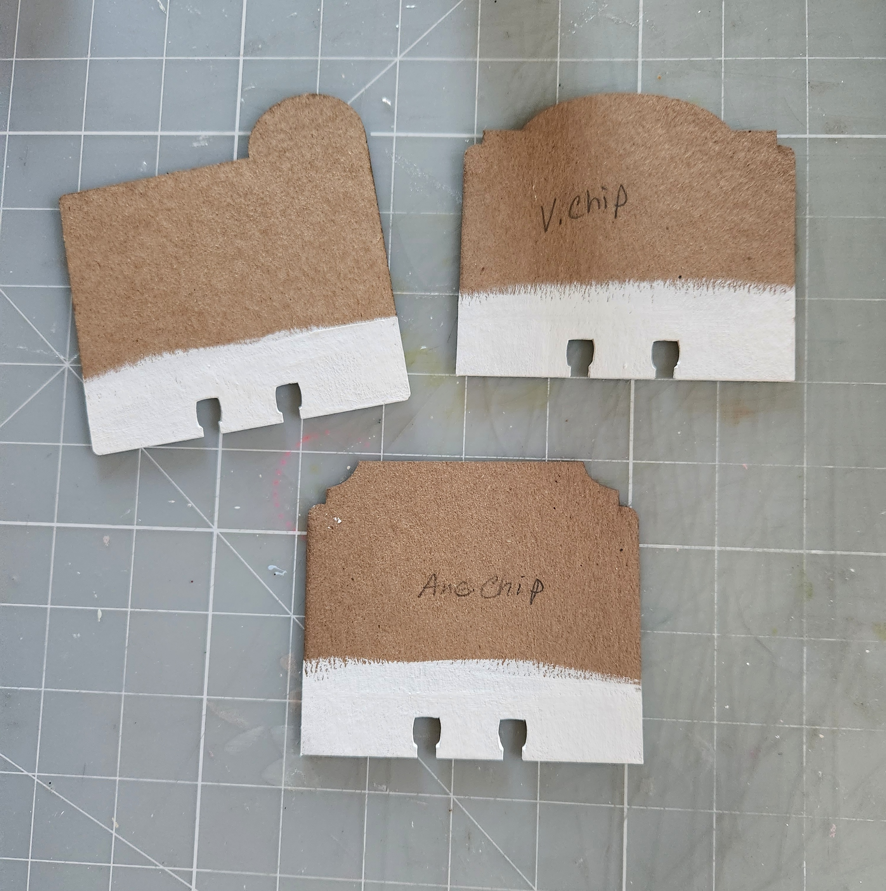 I painted the bottom sections of some of my Memory-Dex cards using White, Pink and turquoise acrylic paints. I inked all my papers and ephemera pieces with Tim Holtz Distress Ink Gathered Twigs. After gluing your paper to your Chipboard card, I trimmed away any excess paper using my x-acto knife and smooth any rough edges away with my Distress tool or sanding tool.
