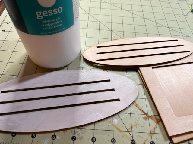 I painted the base and frame with white gesso. Then I glued the frame together on the sides and bottom (leave top open to insert picture).