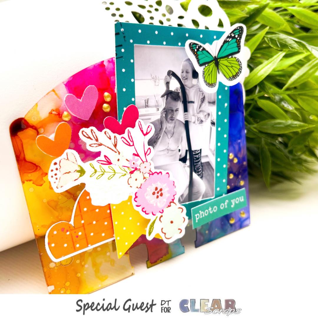 Once the alcohol was dry I added some embellishments (pretty little studio) and a photo.