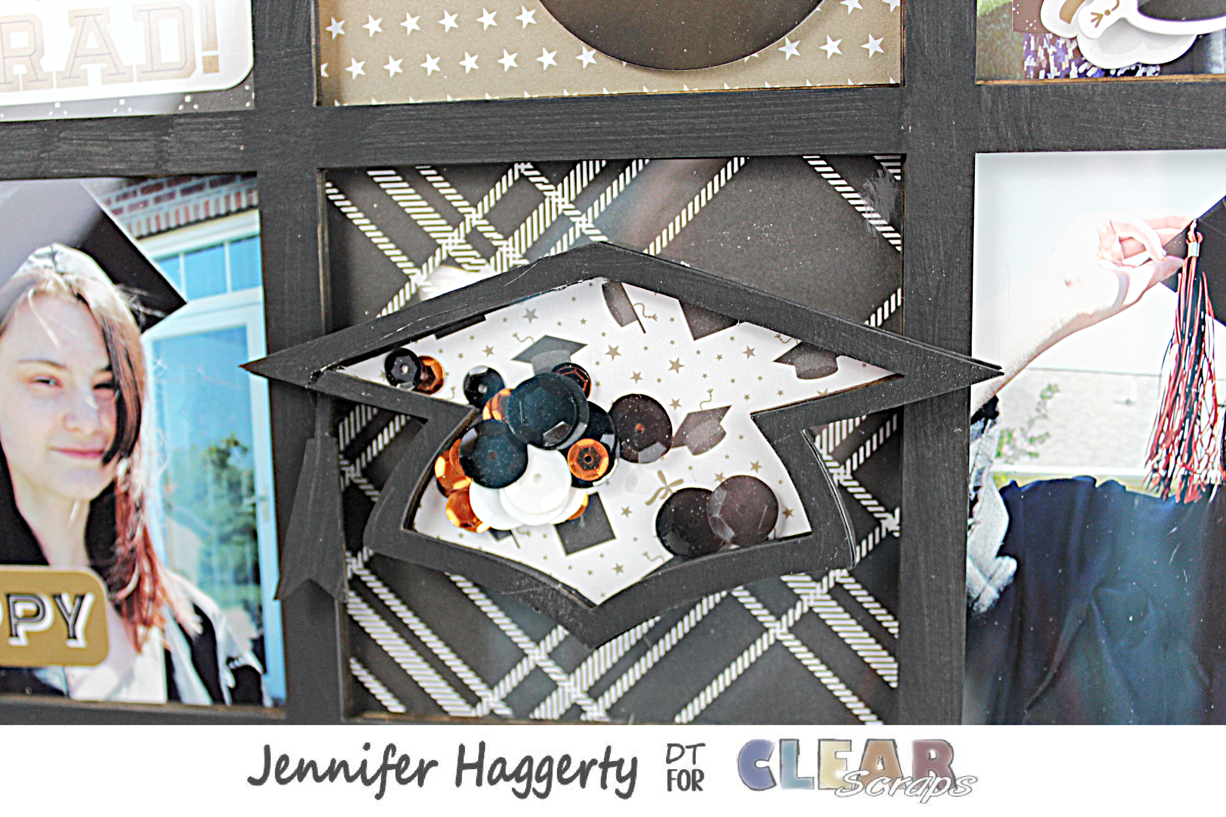 Using the Graduation Hat Mini Shaker Shape as the main accent of my Printer Tray Frame, I included my daughter's school colors in the sequins. I then affixed my Shaker using pop dots after assembling.