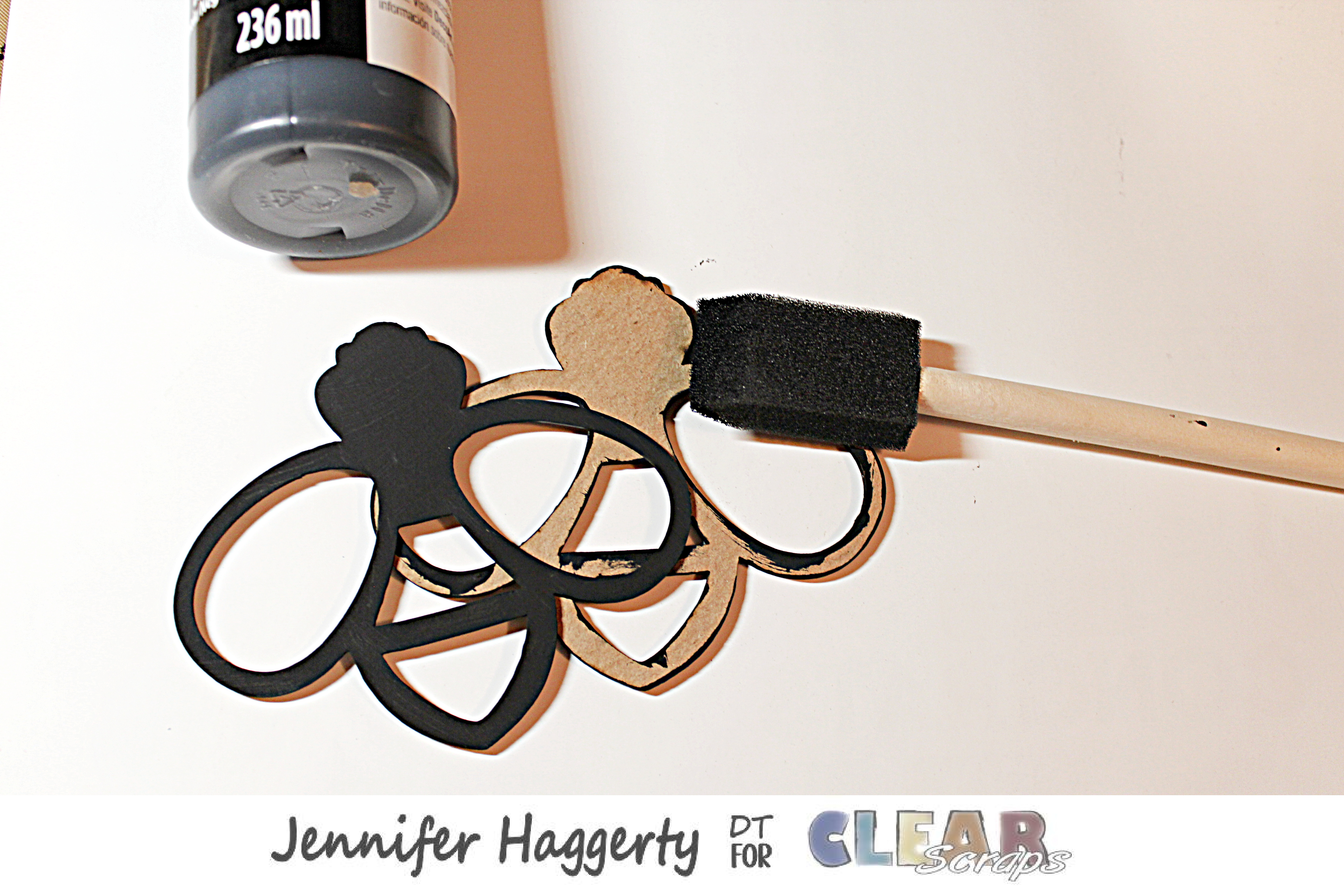 Next, I painted the top chipboard frame and the edges of the two inside frames with black acrylic paint.