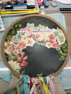 change my photos). I added a chipboard frame from the same paper line overtop and then attached it all to my project. Using ribbon to give the project an overall boho chic look or even a dream catcher look.