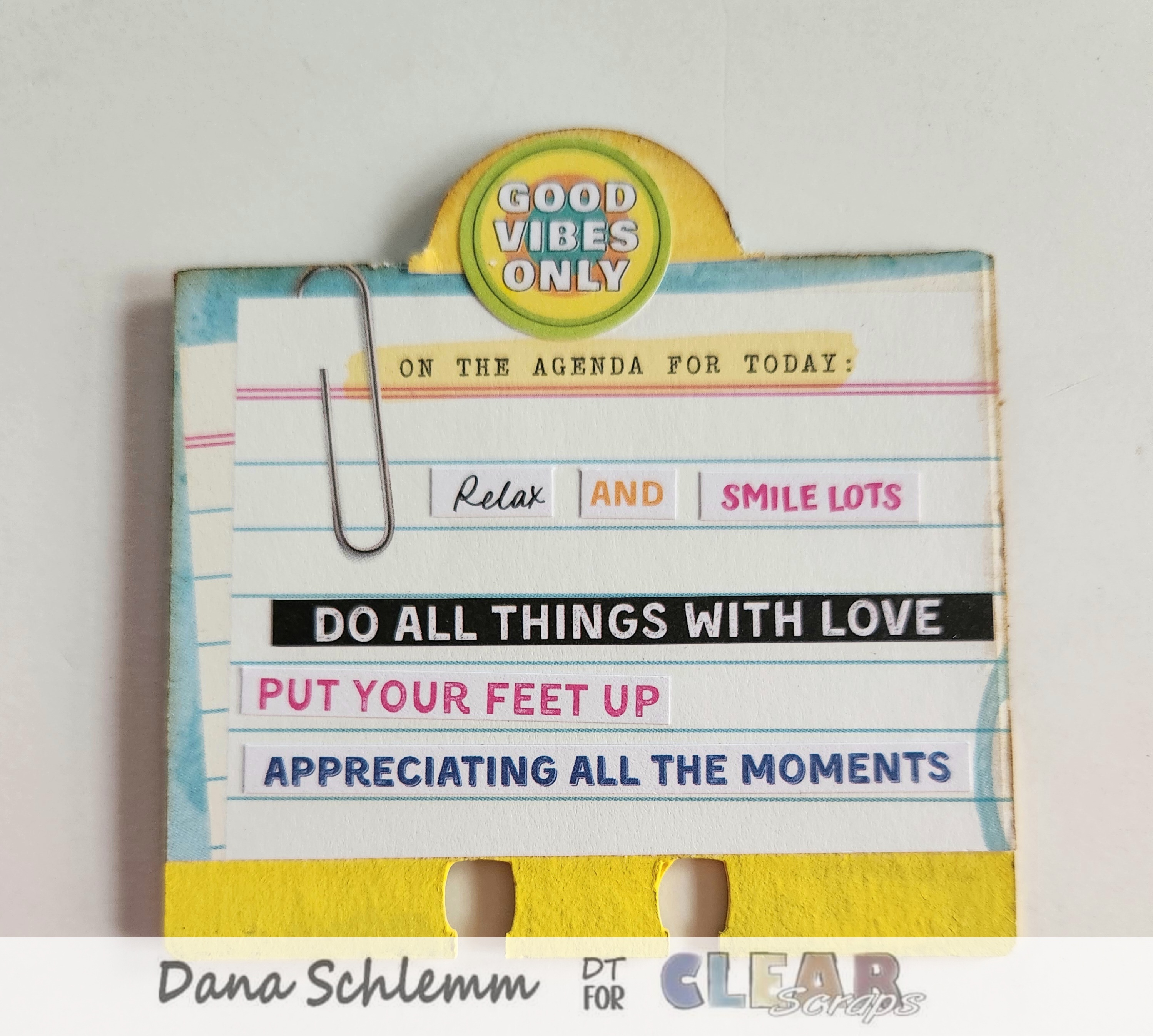 Card 3: I adhered a Agenda Journaling card to the front and added some sticker phases and a sticker at the top.