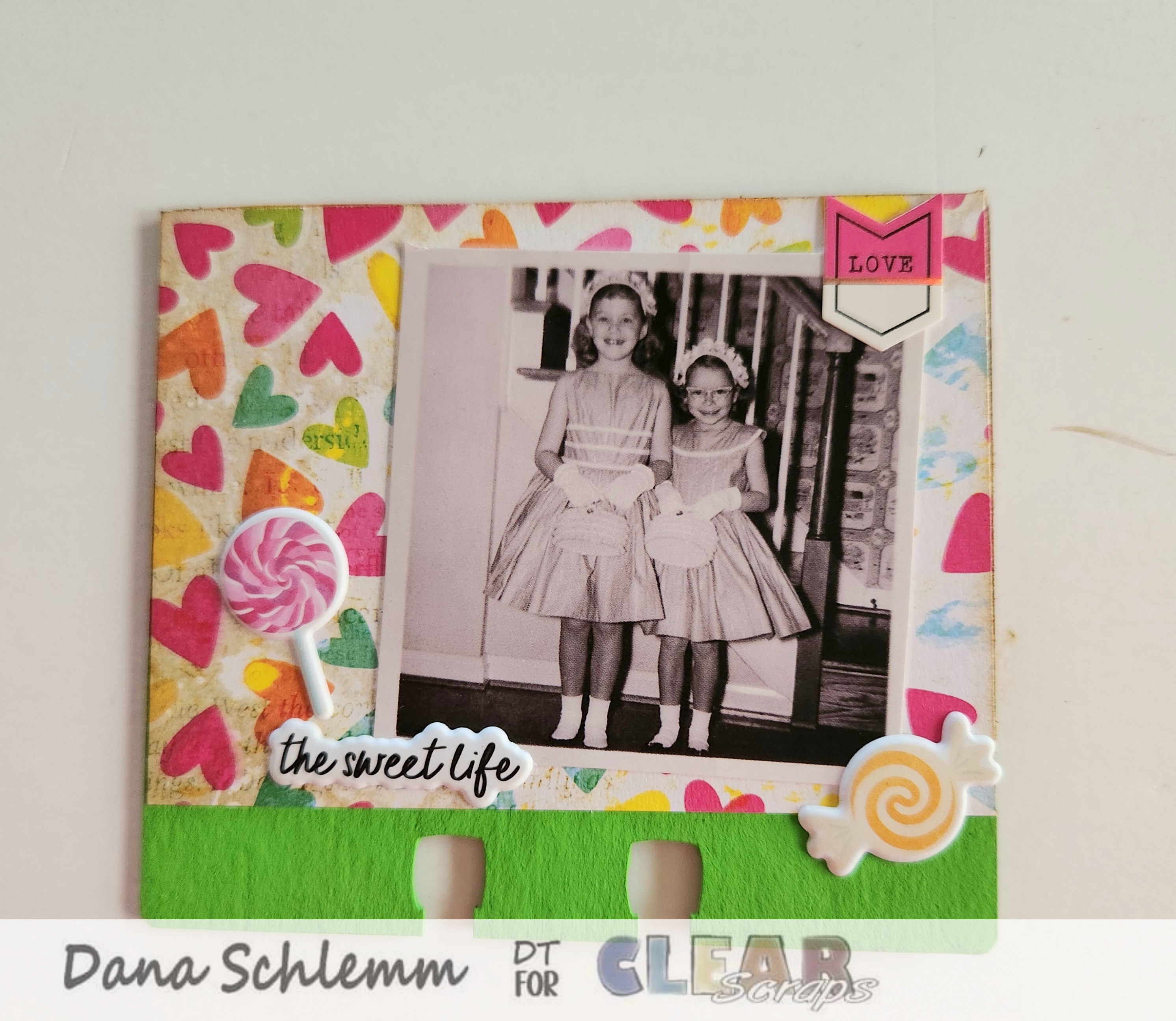 Backside of Card 2: I adhered a photo, sticker sentiments and puffy heart stickers. Here are some closeups!