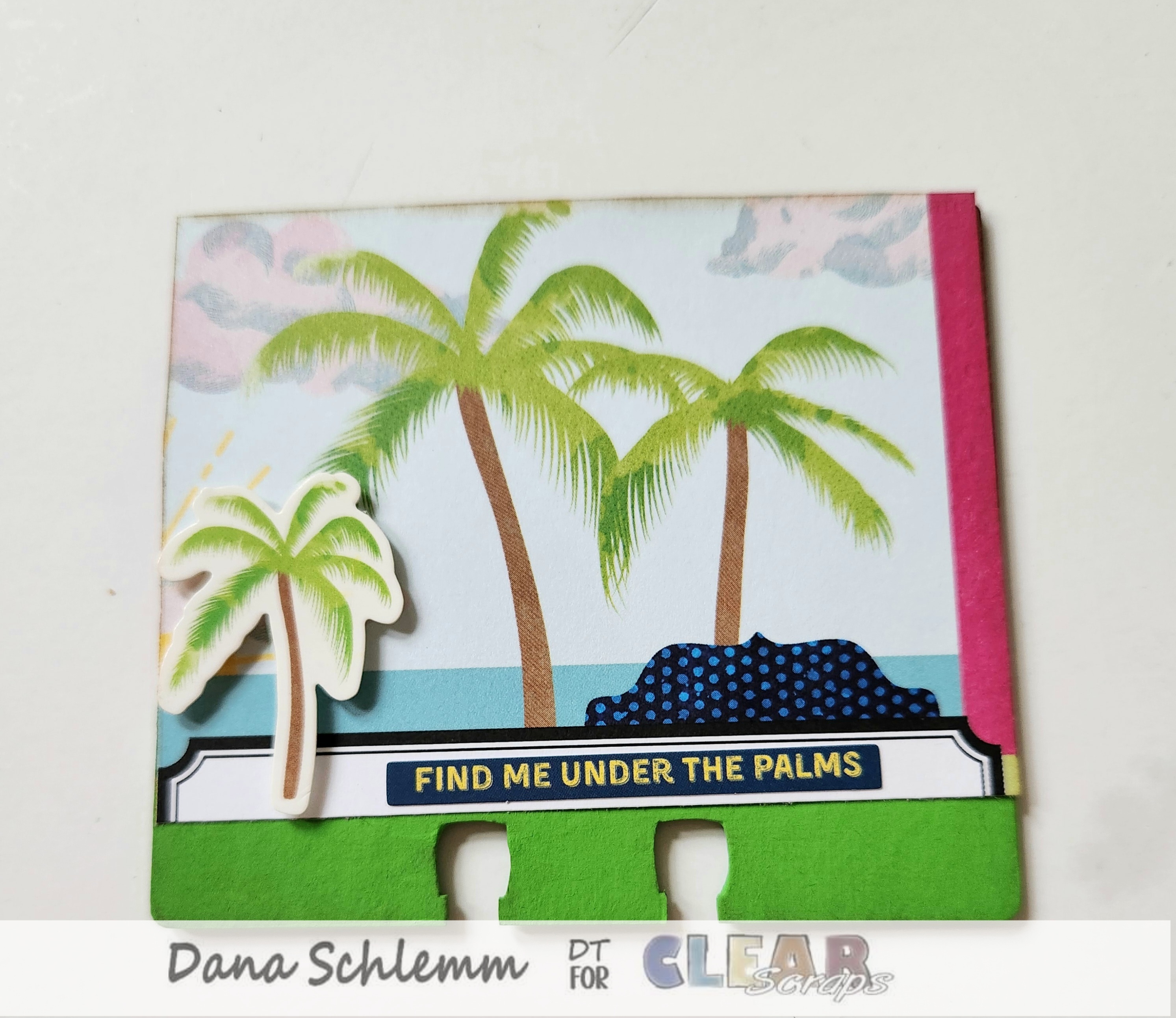 Card 4 backside: Palm trees Journaling card and with foam dots added a small palm tree sticker and sentiment at the bottom. Here's acouple more photos!