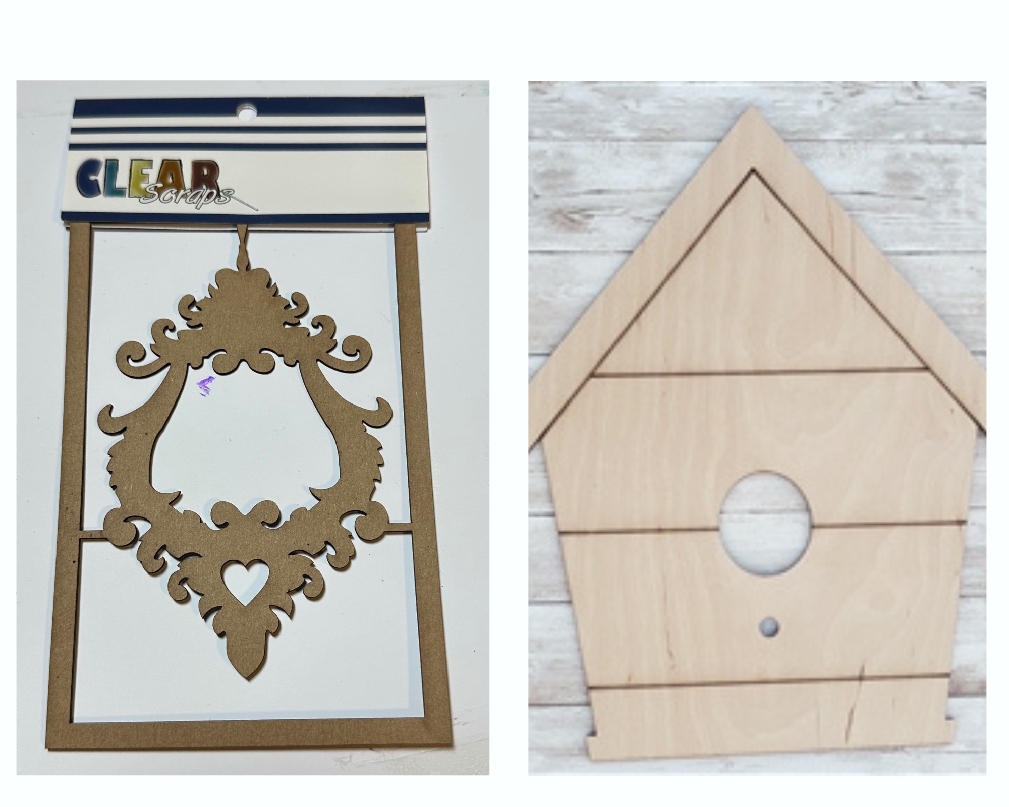 I used the Birdhouse Shiplap Wood Shape and the Ornate Lock Chipboard Embellishment.