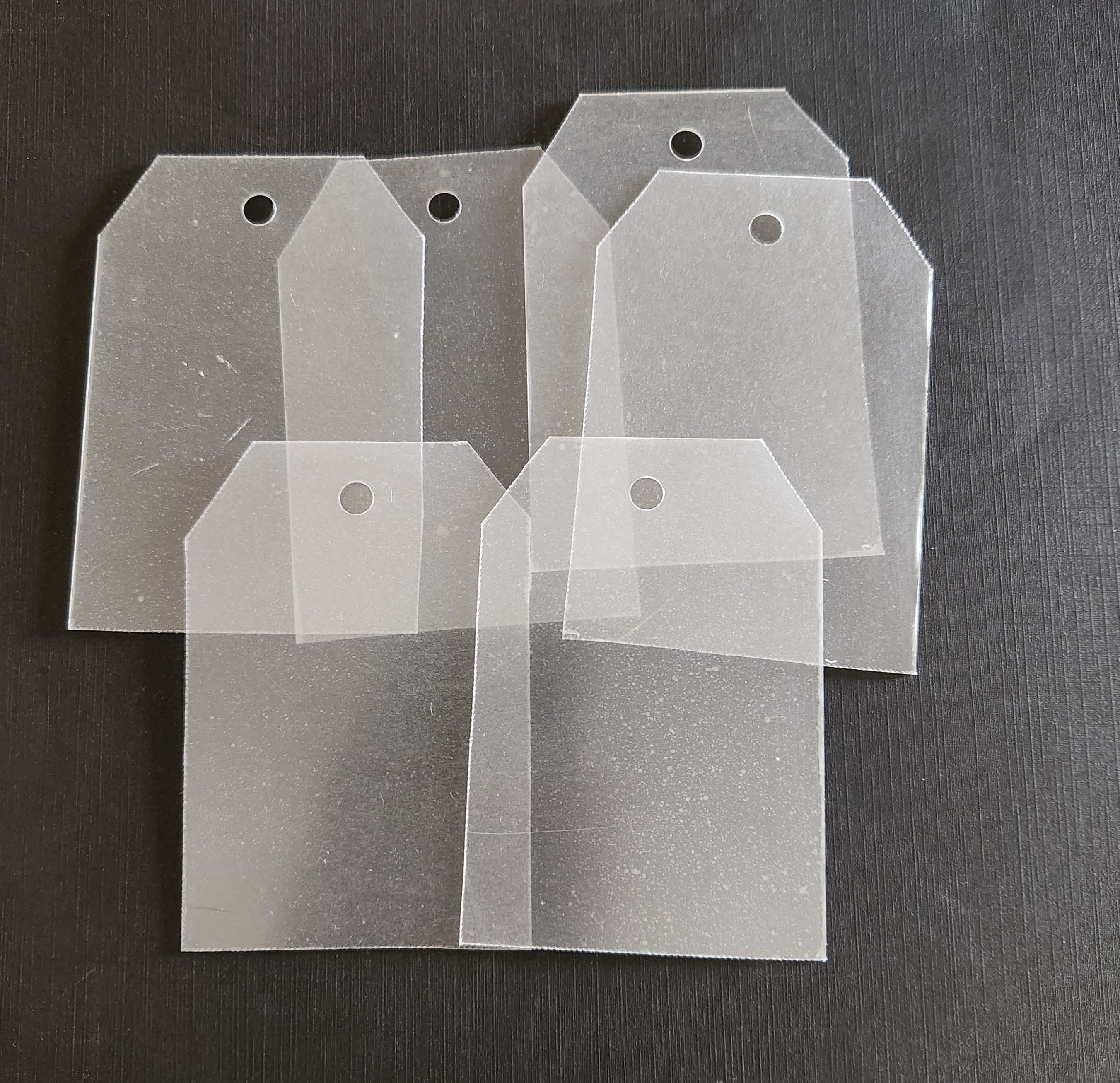 Now if you like, I used some of the leftover scraps and created some acrylic tags to include in my gift box. I used a 12×12 acrylic sheet from a previous Clear Scraps printer tray project. I cut a total of 6 tags from my acrylic sheet to measure 2 & 1/2 x 4. I punched a hole at the top using my Crocodile punch.