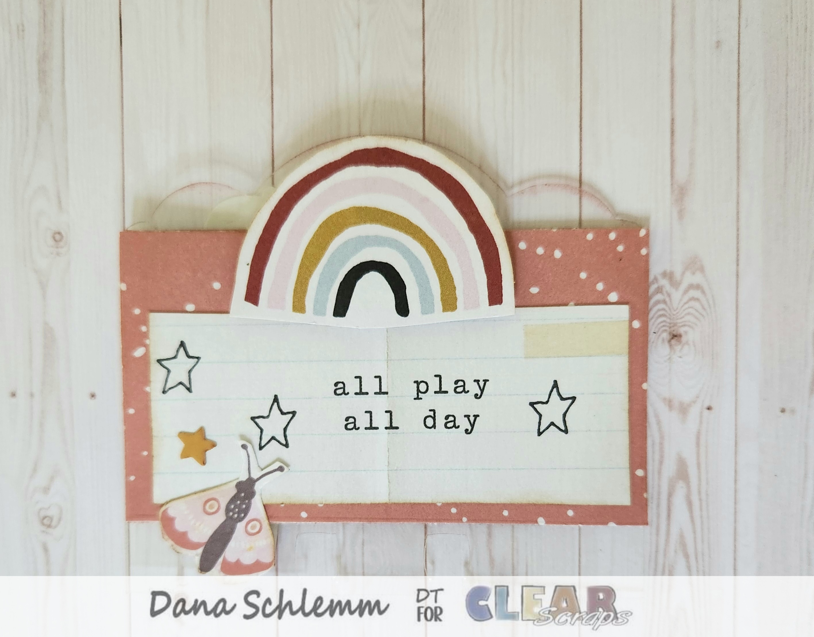 Card 2 back: I adhered another paper and a small Journaling card on top. Adhered a rainbow sticker on the top and a tiny star sticker and fussy cut moth on the left side. Here's a photo!