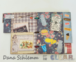 I chose an older paper collection in my stash from Ruby Rockit "Country Cooking" along with some items from my stash! For my cookbook, I wanted a vintage look to my album, but any papers you have in your stash will do. I like to Ink all my papers using Tim Holtz Distress Ink Gathered Twigs.