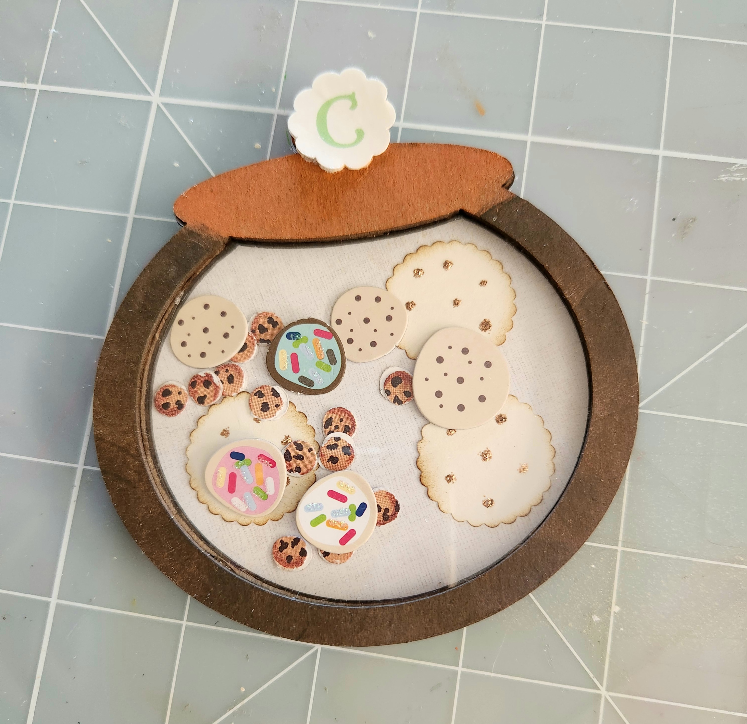 Then glued two tiny cookies together, so when inside my shaker, they will be visible on both sides.