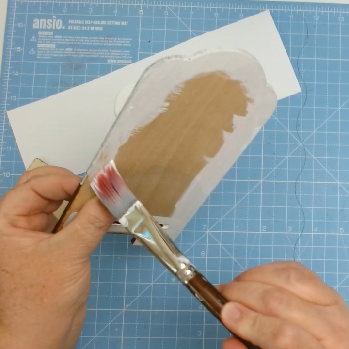 Then I set it aside to dry. In the meantime this gives me a chance to start cutting out my layers to glue onto my wood base. Once I've cut out all four shapes, I use my Prima Marketing paper edge distressing tool to rough up the edges.