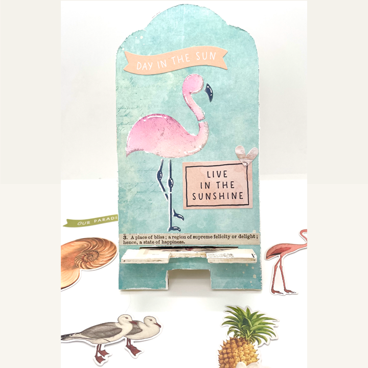 I am so excited to share my first guest design project for Clear Scraps ! Today I am using their Vintage Wood Phone Holder and 6" Flamingo Stencil. This phone stand is 4" wide by approximately 8" tall and is the perfect size for your desk and the best part is, if you do not glue the wood pieces together you can break it down and take it with you to your crops.