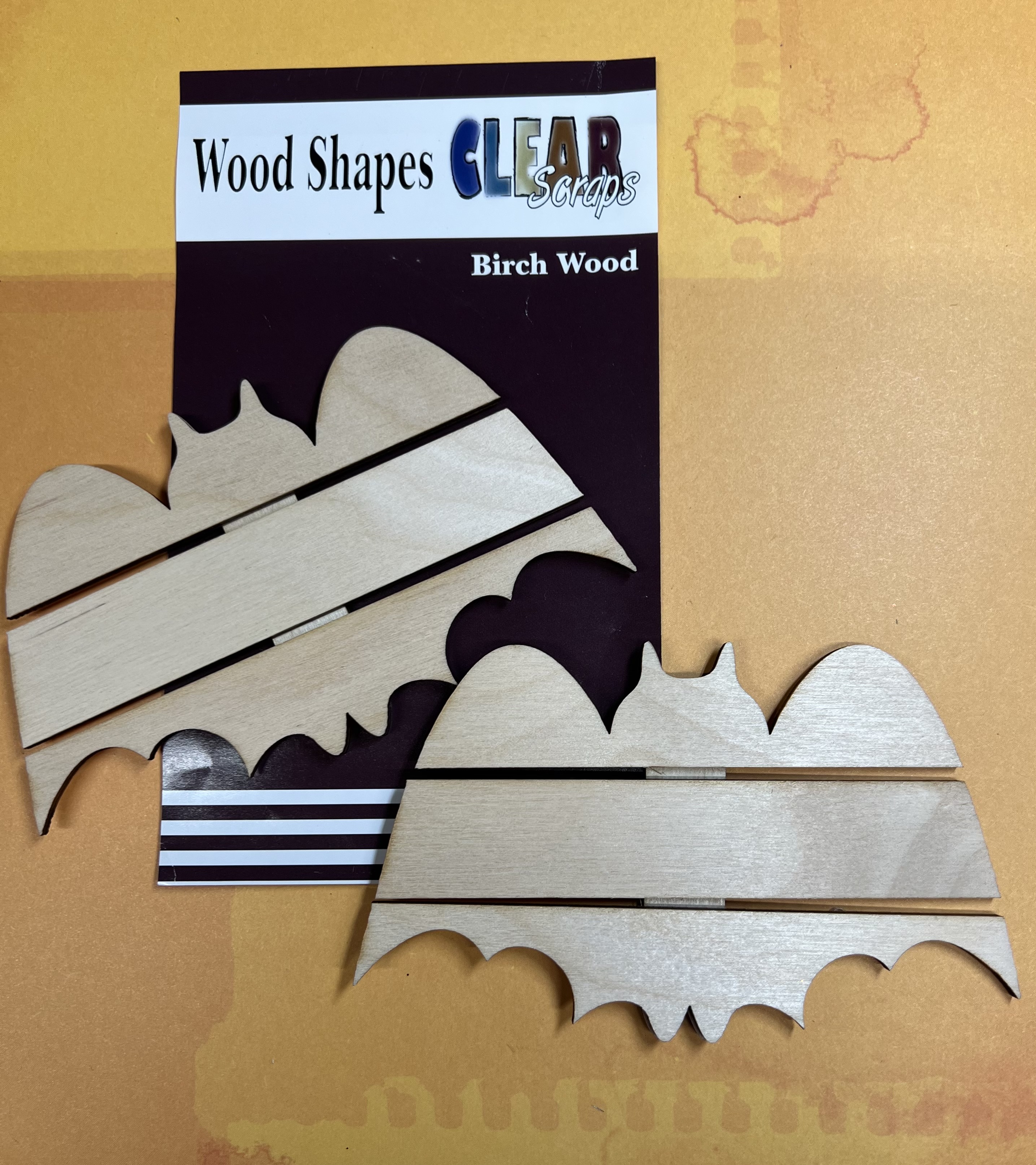 Hello fellow crafters! Today I am working on wreath attachments using Clear Scraps birch small wood bats and the witch hat shaker. These can be added to cards, used as holiday decorations, the possibilities are endless.