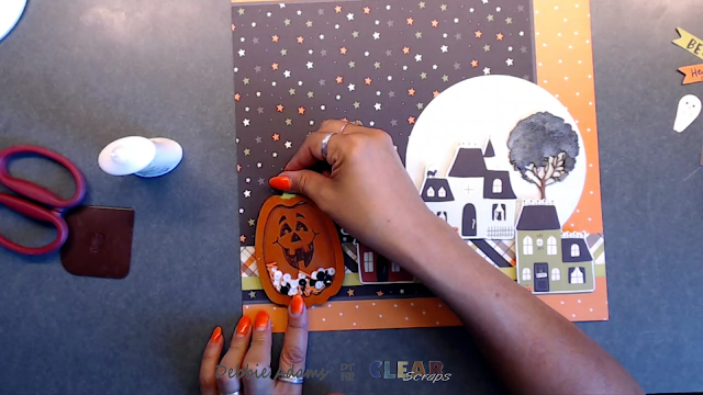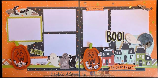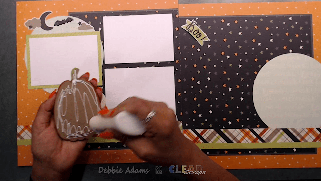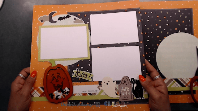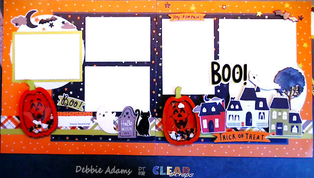 Today's project is a super cute scrapbook layout I created using Clear Scraps Tall Pumpkin Shakers along with one of the Oak Tree Chipboard pieces.
