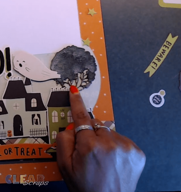 To start we will be using two of the Tall Pumpkin Shakers and one of the Chipboard Oak Trees, along with what ever Halloween paper line you would like to use.