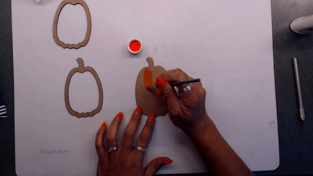 Next I painted the pumpkin bottom piece and one of the pumpkin framed piece that will go over the acetate.