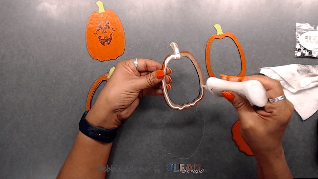First take off the film covering from both sides of the pumpkin shaker acetate. This way you don't forget.