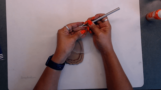Once I am done I grab the bottom pumpkin (with the face) turn it over and place down on top of the glue and press firmly to make sure its secured.