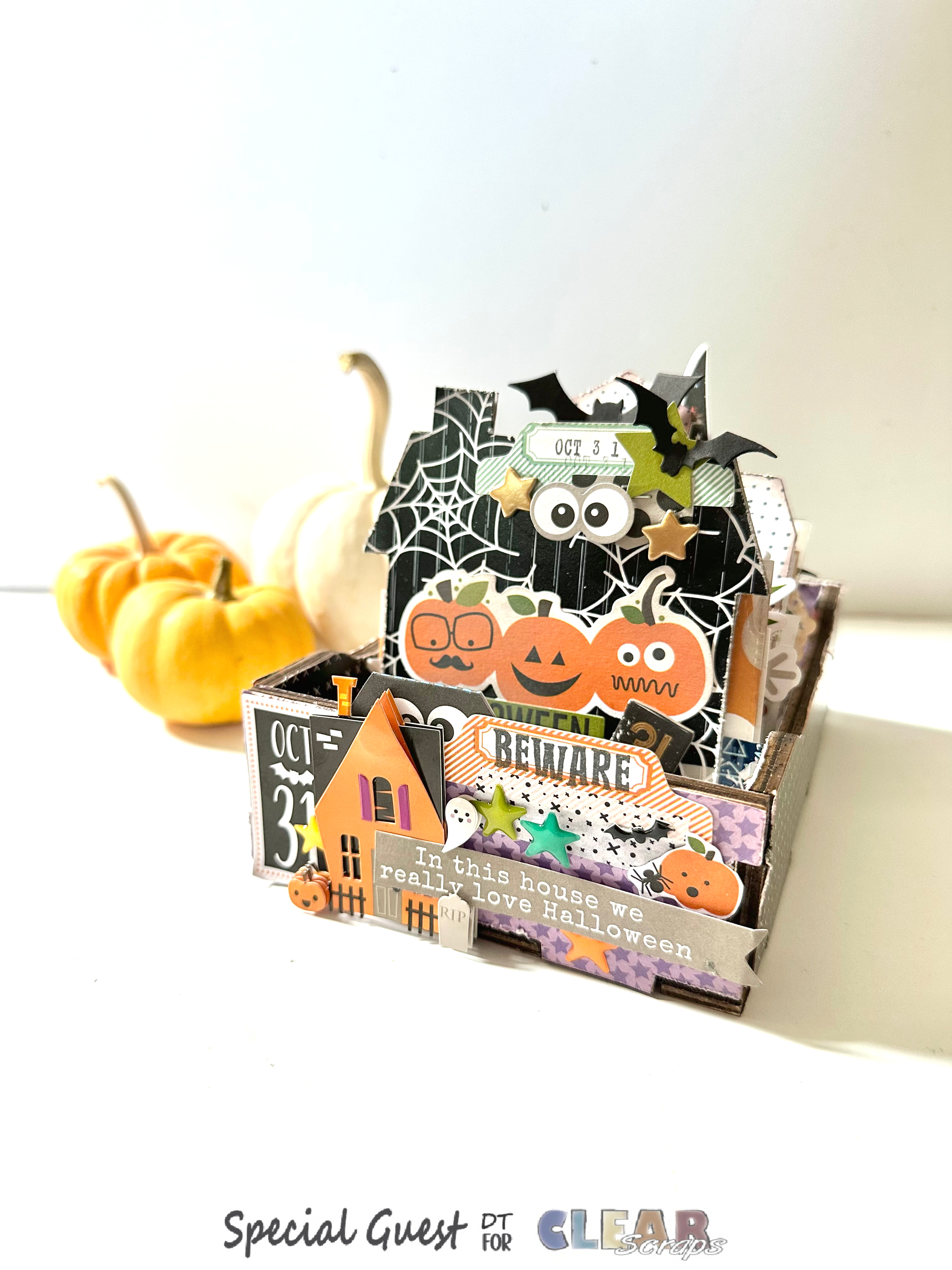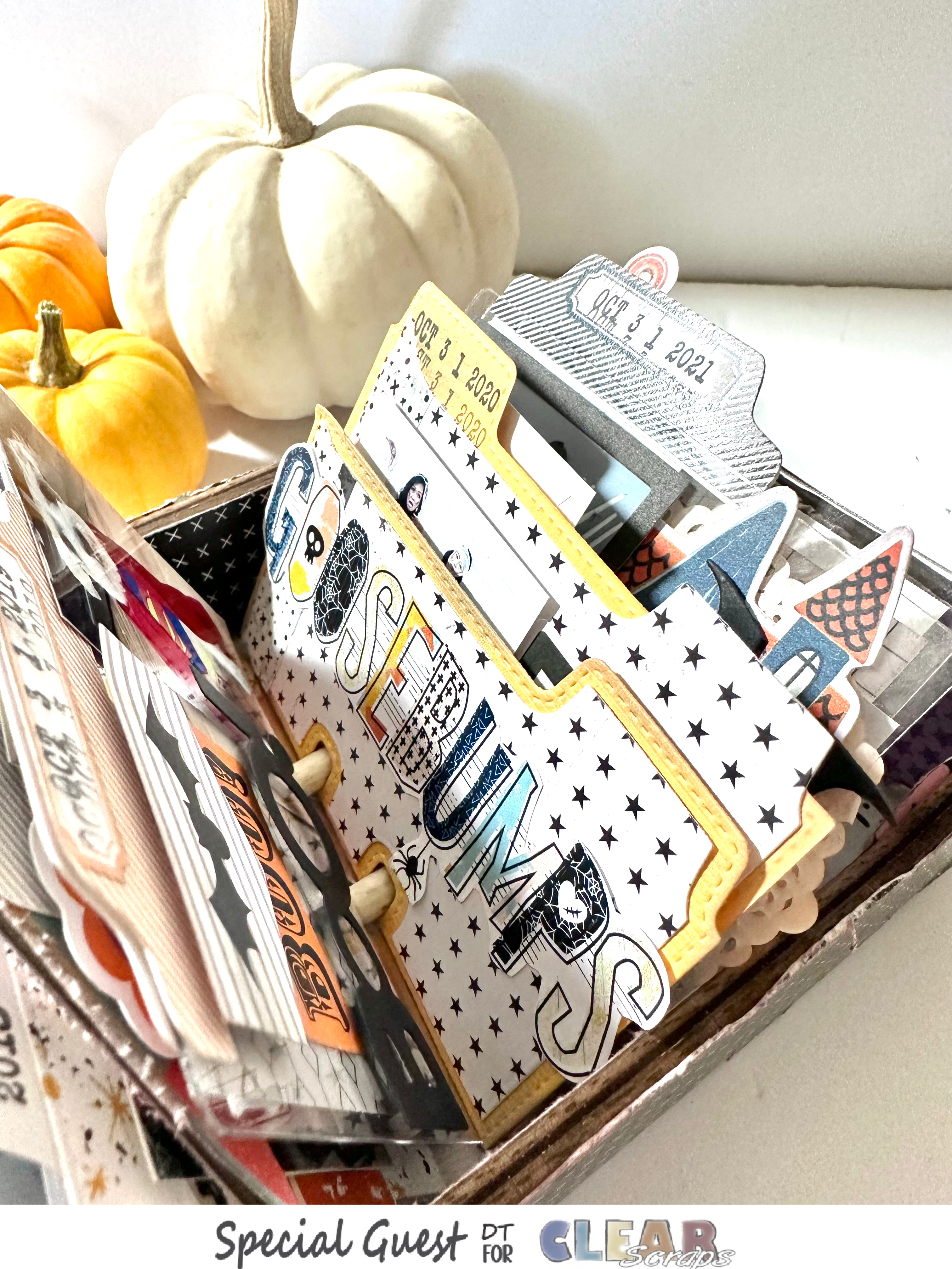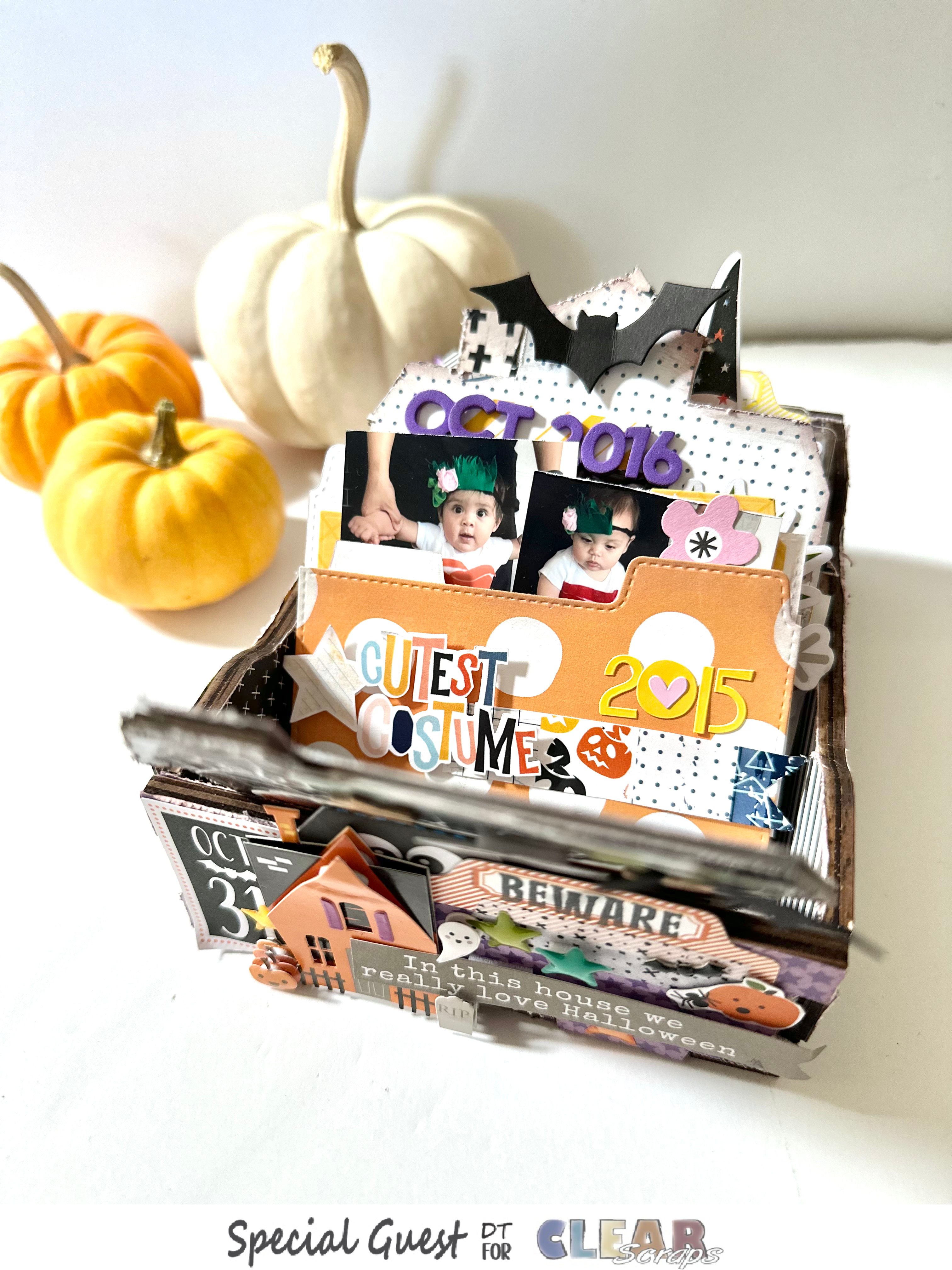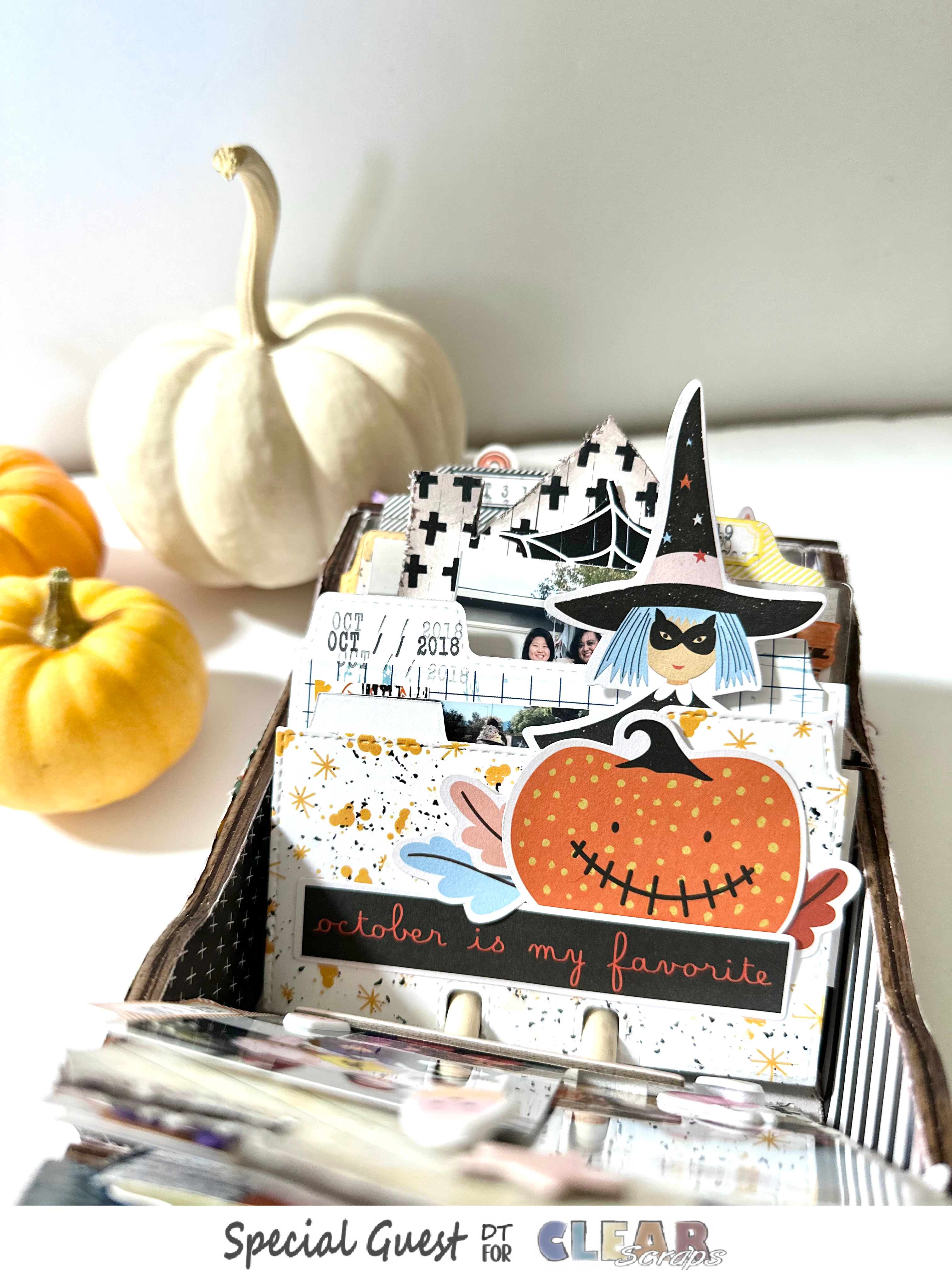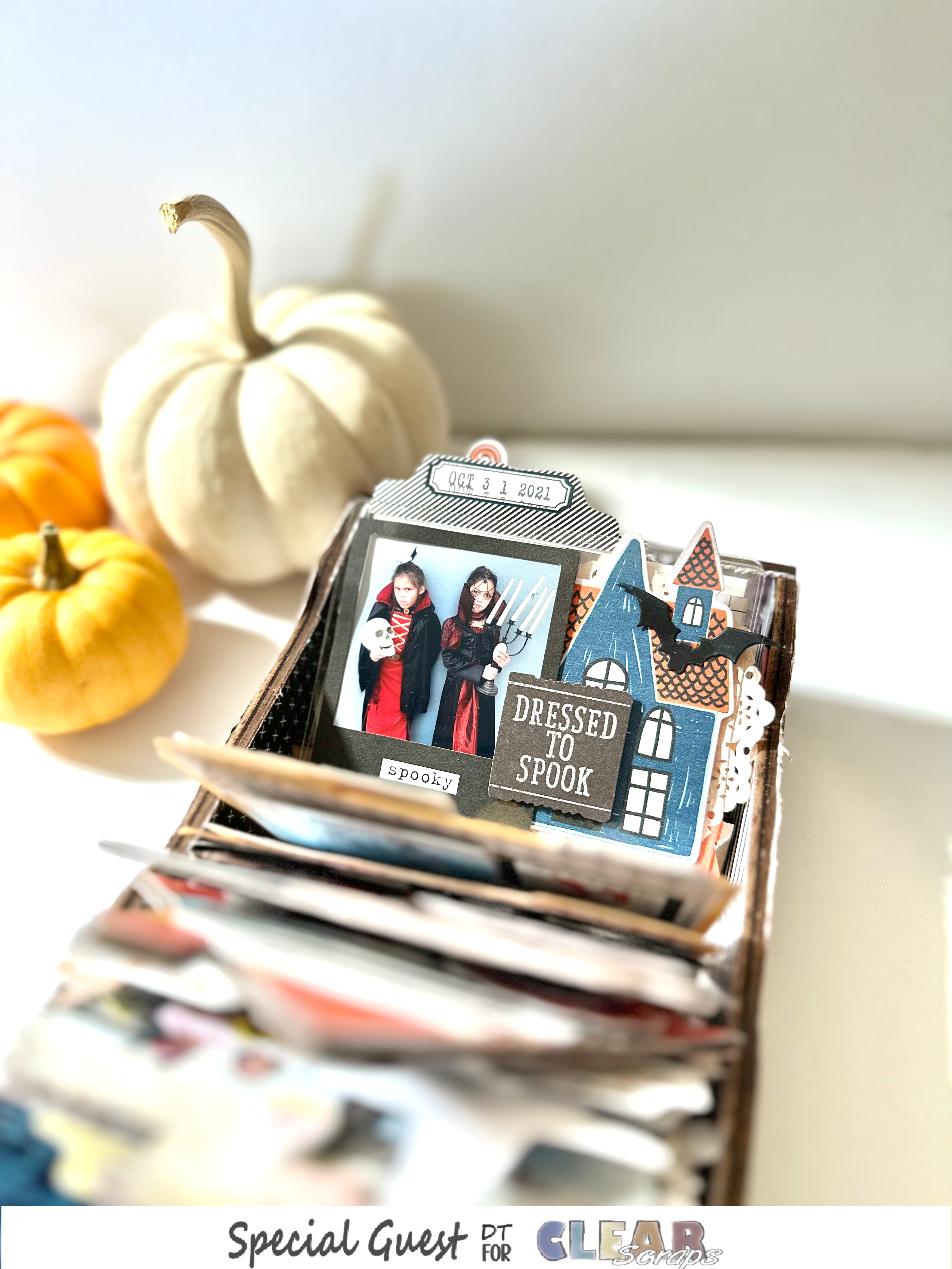 My favorite part about creating this Halloween box was being able to use the various Clear Scraps materials (wood, chipboard, and acrylic) to create a unique project for my family to flip through every October! The possibilities are endless when you think about all the ways you can embellish these surfaces with your papers, stickers, and stamps. What’d you think? Hopefully, I have convinced you to create a box to document your Halloween memories!