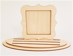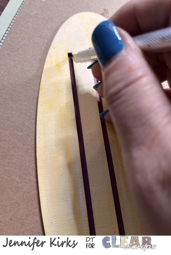 Next, I used an exacto knife to cut the slits into the base and the inside of the scalloped frame. I have found that this is the easiest way to get a clean cut on the slits and make sure the wood is covered.