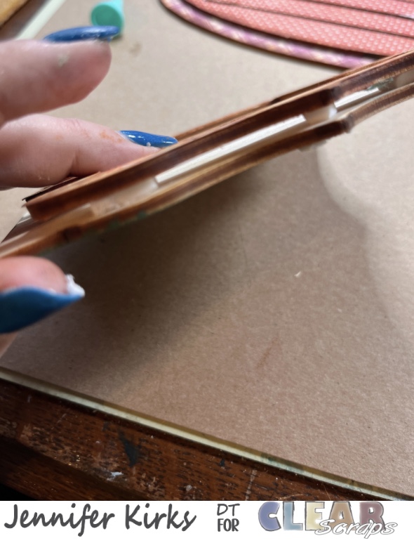 After gluing and using a file to smooth out the edges, I inked the edges of the bases and frame using a brown ink.