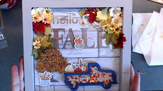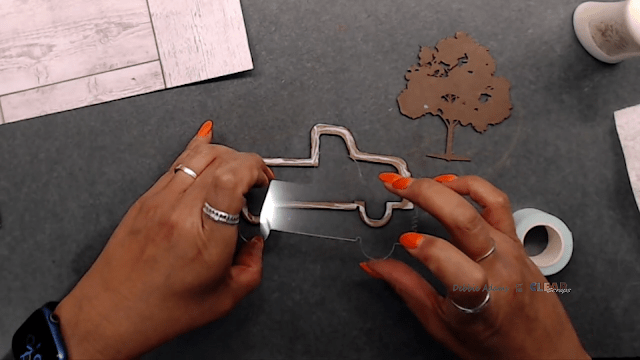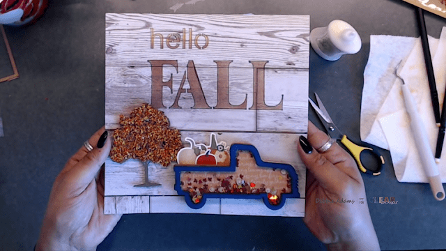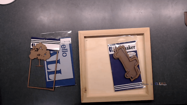 Let's get started on this fun "Hello Fall Wall Decor". Here are the supplies you will need from Clear Scraps Chipboard Oak Tree., Mini Shaker Vintage Truck, and Hello Fall Stencil. I used the back of a canvas as my frame.