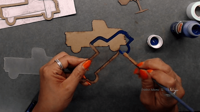 I did paint the bottom piece of the truck but I ended up placing pattern paper on top of it.