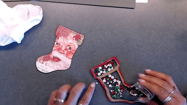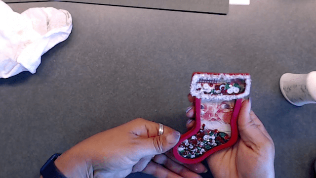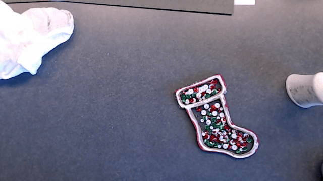 I placed glue around the border of my stocking.